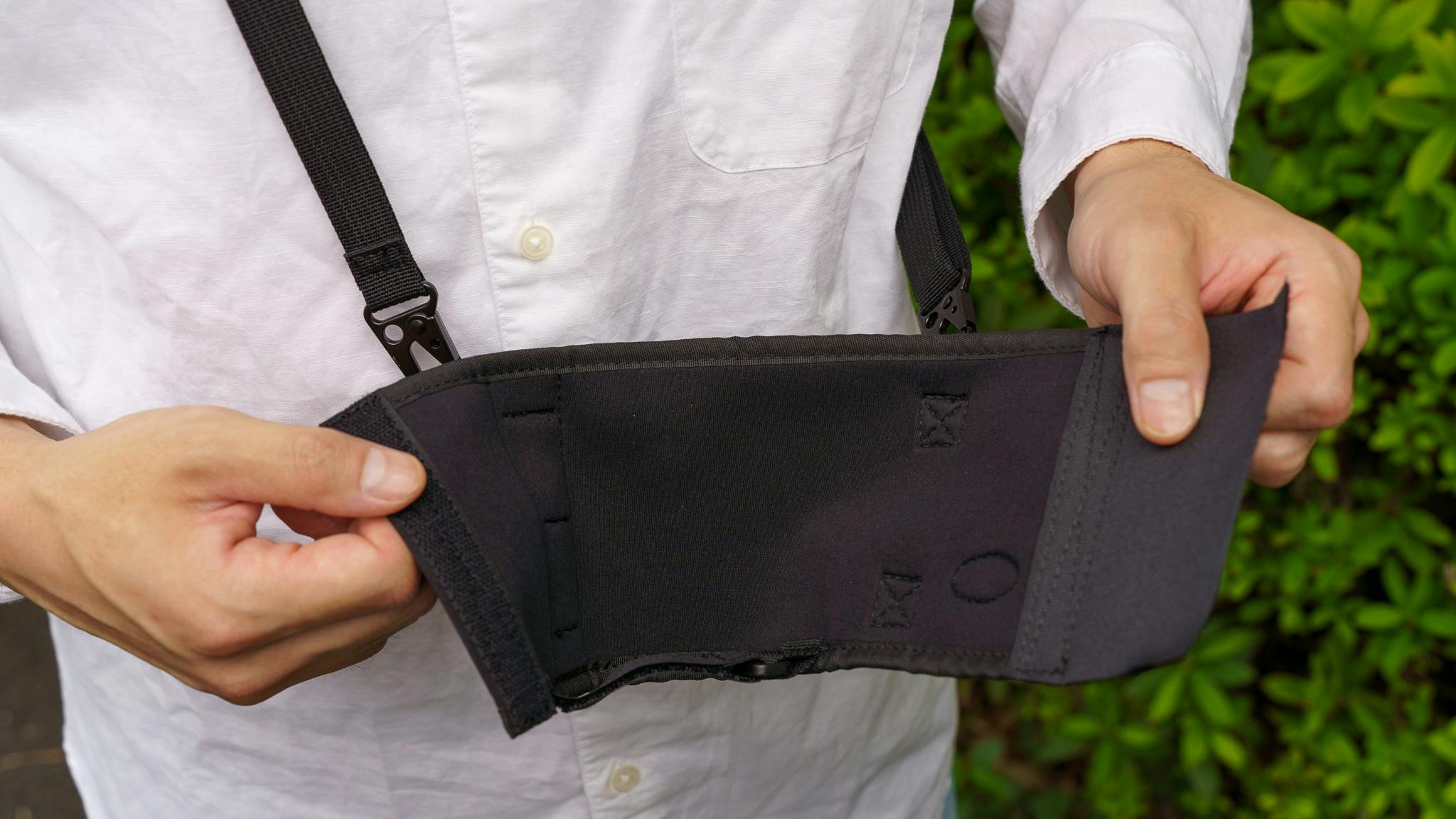専用スリングカバーには広めの面ファスナーを配し、こちらも細かくサイズ調整できる仕様に。スムーズにタンブラーを出し入れできます。