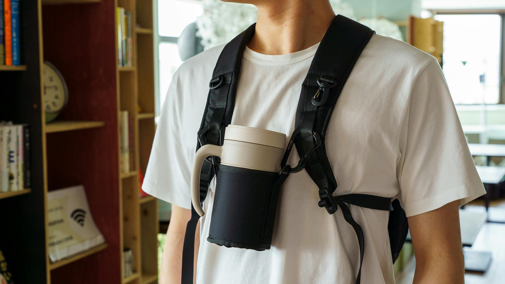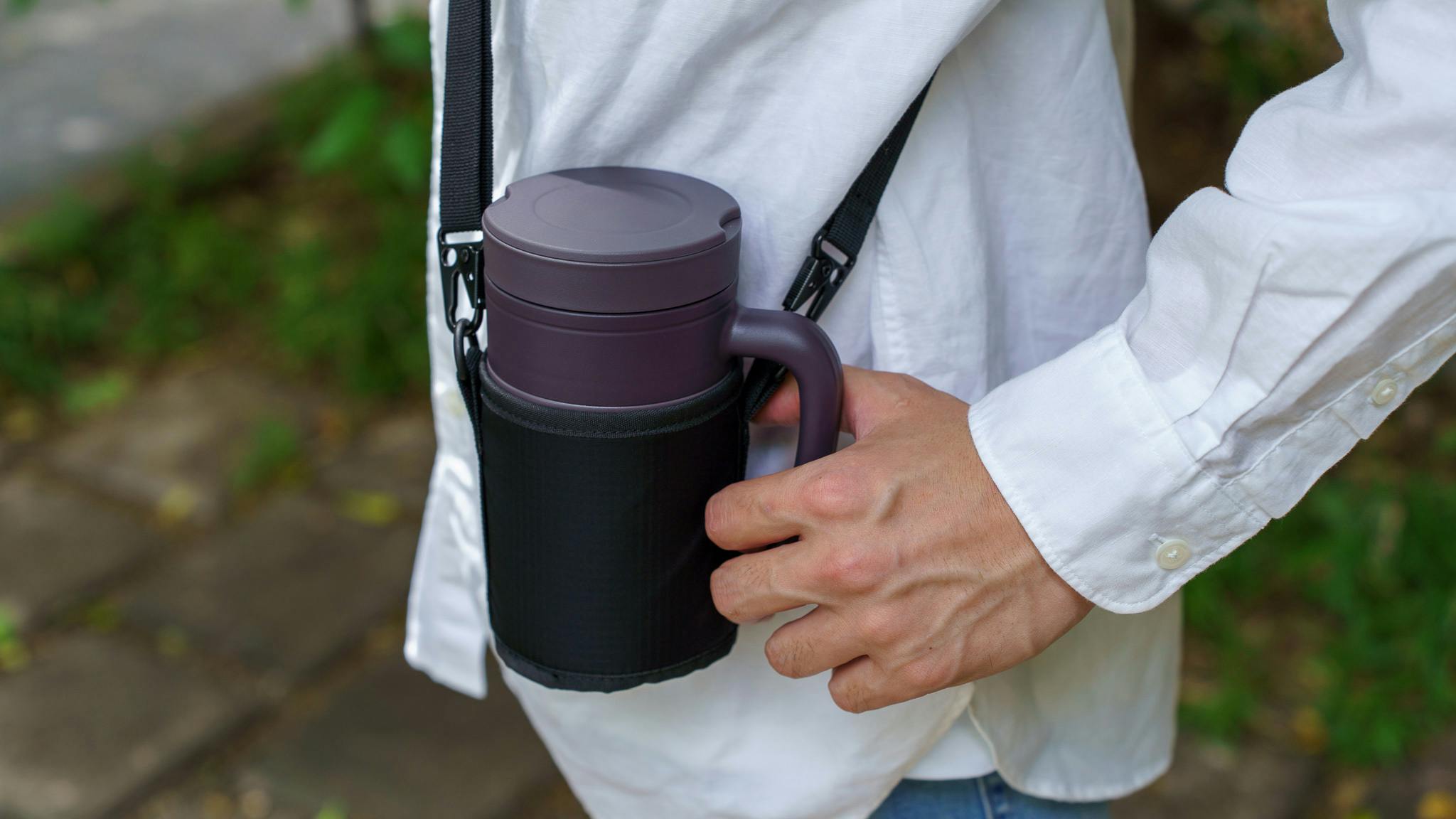 ティーホルダーストラップは茶こしや持ち手の付いた使い勝手の良いタンブラーと、持ち運びに便利なオリジナルスリングカバーがセットになって、外出時のお茶問題を見事に解決してくれます。