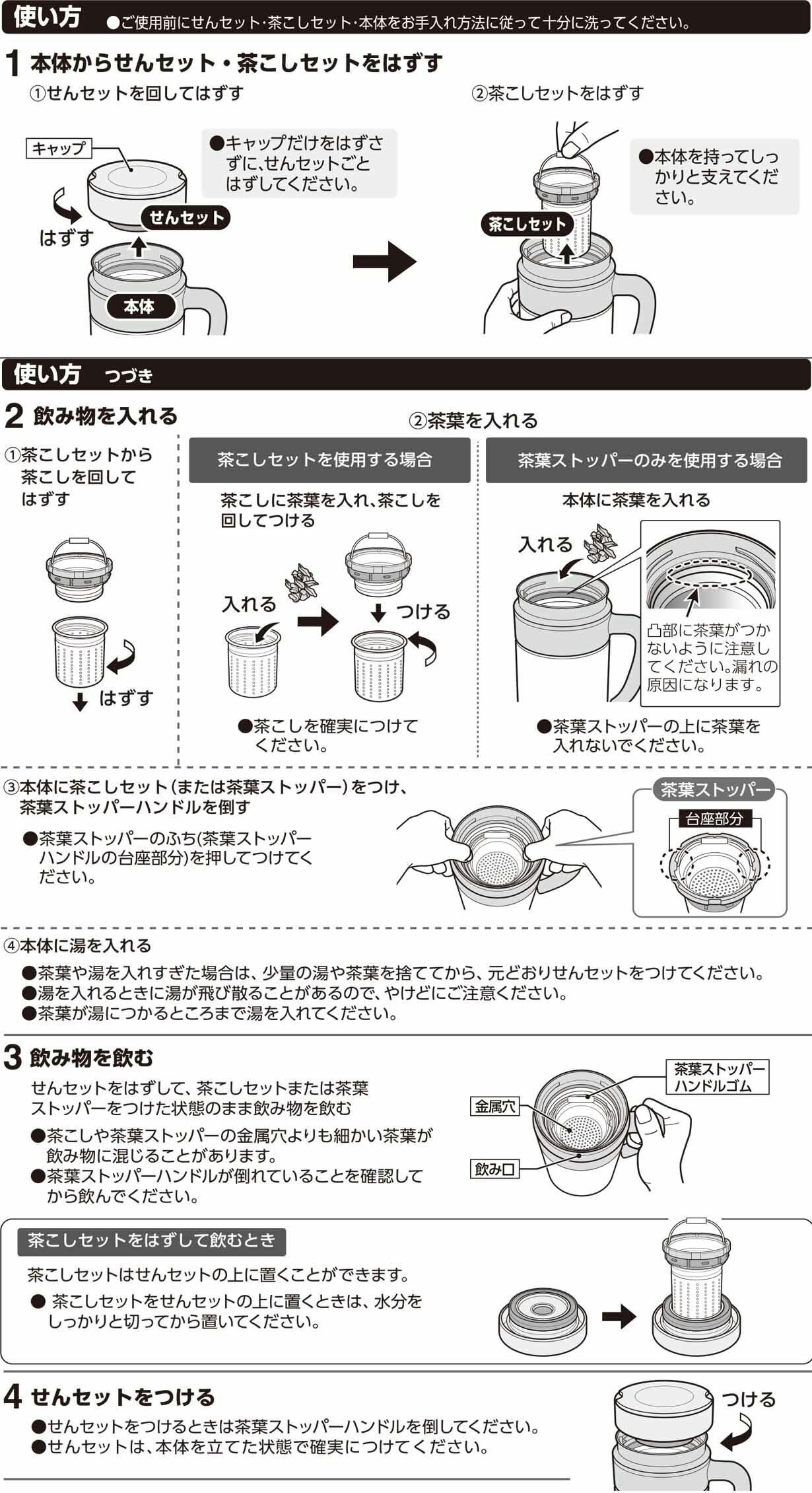 もちろん、茶こしをセットしなければ普通の水筒としてお使いいただけますし、茶こし単体をお持ちのマグカップに使用いただくことも可能です。