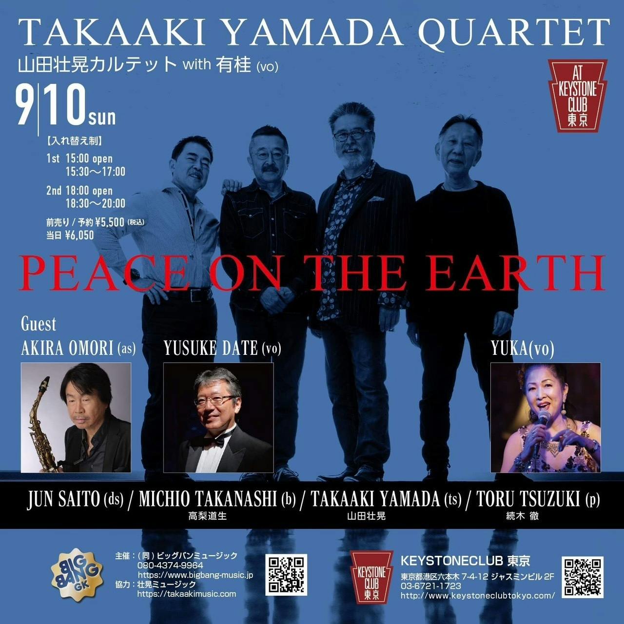 その渾身の一枚となるこの度の作品「Peace On The Earth」を持って、更に多くのお客様に知って楽しんで頂きたく、昼夜と時間帯も分け、この度のライブを企画致しました。