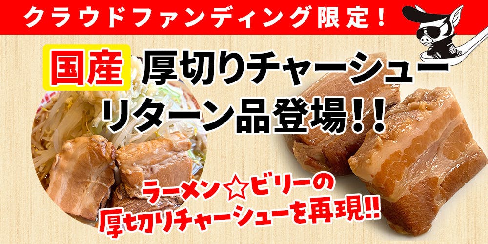 厚切りチャーシューは一般発売はしませんので、クラウドファンディングの支援者だけが味わえる、特別な追加リターンとなります!