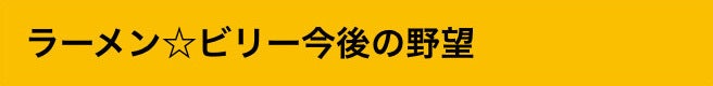 「ラーメン☆ビリー」では、この袋麺の発売をきっかけに、全国にビリー中毒者=ビリリアンを増やしたい!と考えています。また、この袋麺なら海外の方にも気軽に家で召し上がっていただけるので、ワールドワイドにビリリアンを増やします。