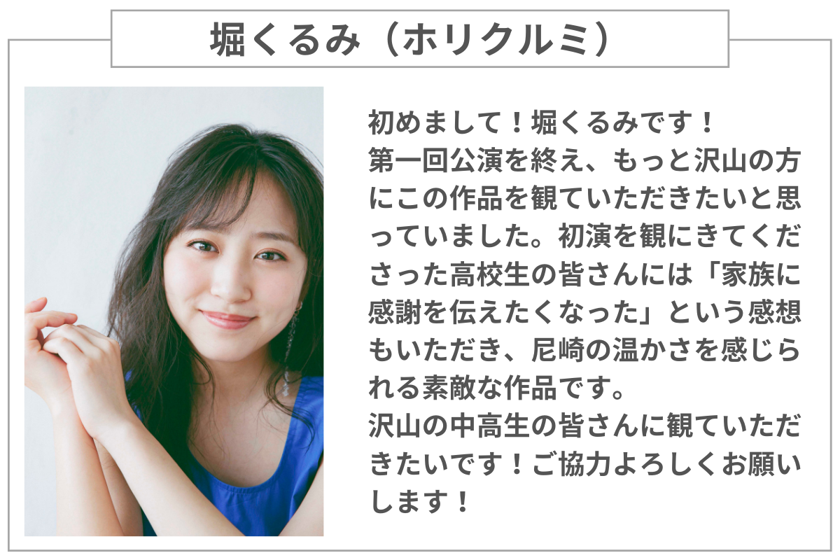 同世代の目線舞台「尼崎ストロベリー」を観て、同世代の目線で本当にさまざまなことを感じていただき、大変嬉しく思っています。