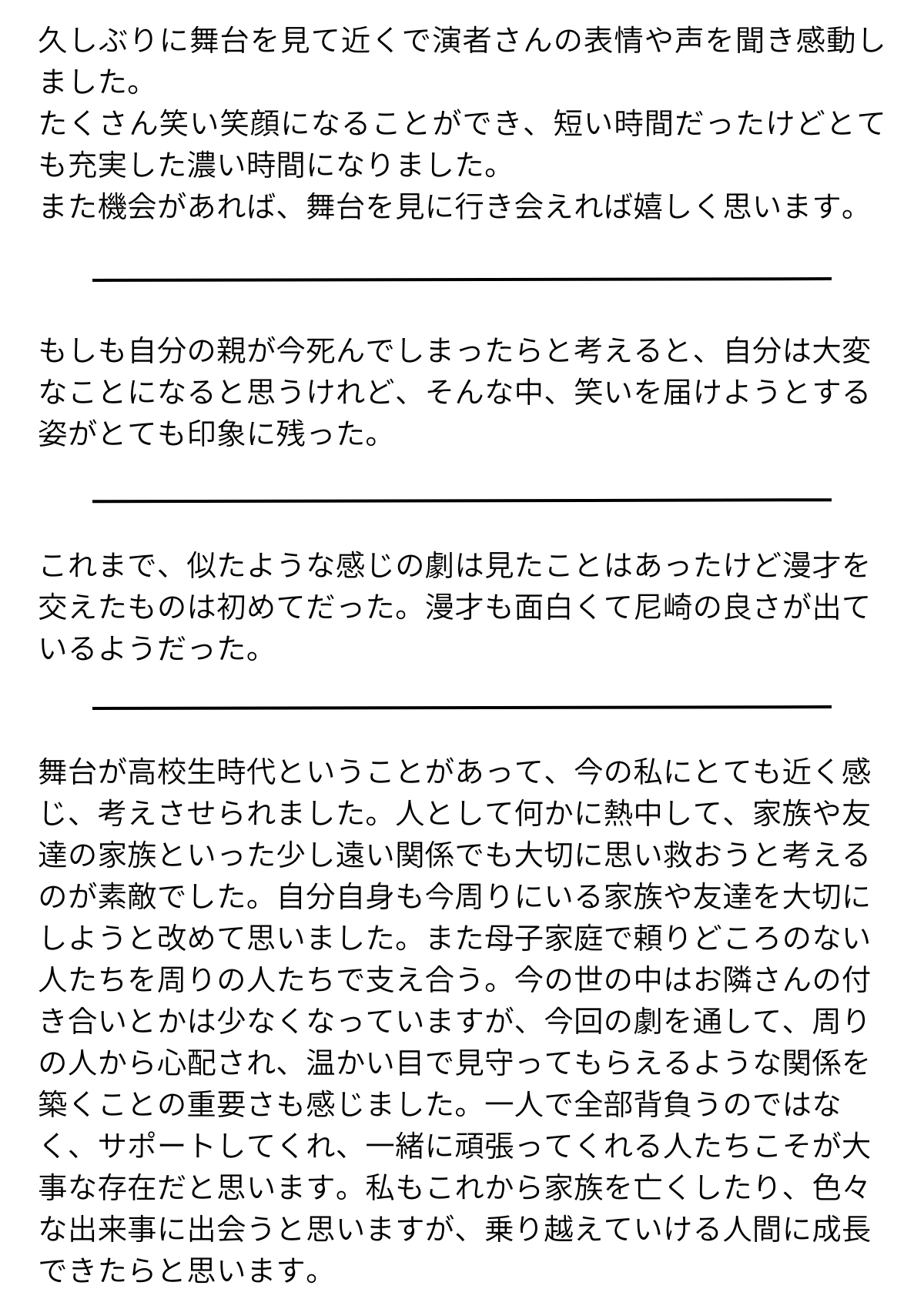 2023年3月の第1回公演をご覧いただいた高校生の感想コメントです。