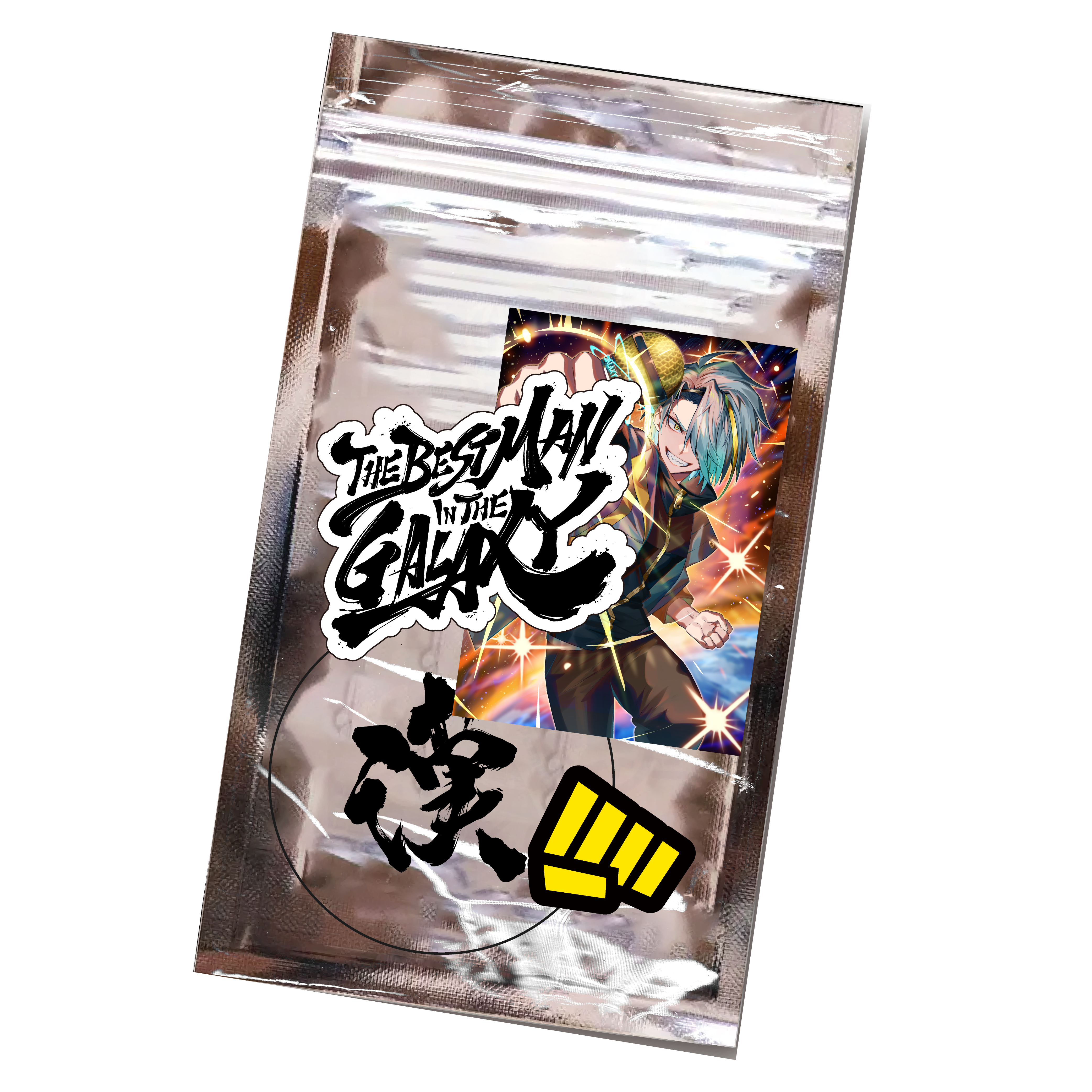 1.Blu-ray/2. フェイクチケット(Blu-ray仕様)/3. ステッカーセット4種類/4. 複製メッセージ入りブロマイド(歌衣メイカ直筆サイン追加!)/5. デジタル壁紙(ループ動画)/6. 会員カード/7. ショルダーストラップ/⒏オリジナル缶バッチ4個セット/⒐デザインソックス/10. お出かけ用アクリルスタンド)/11. タペストリー(漢掛け軸)/12. キャラクターハンガー/13. 漢気ペンライト/14. ペンライトケース/15. マグカップ