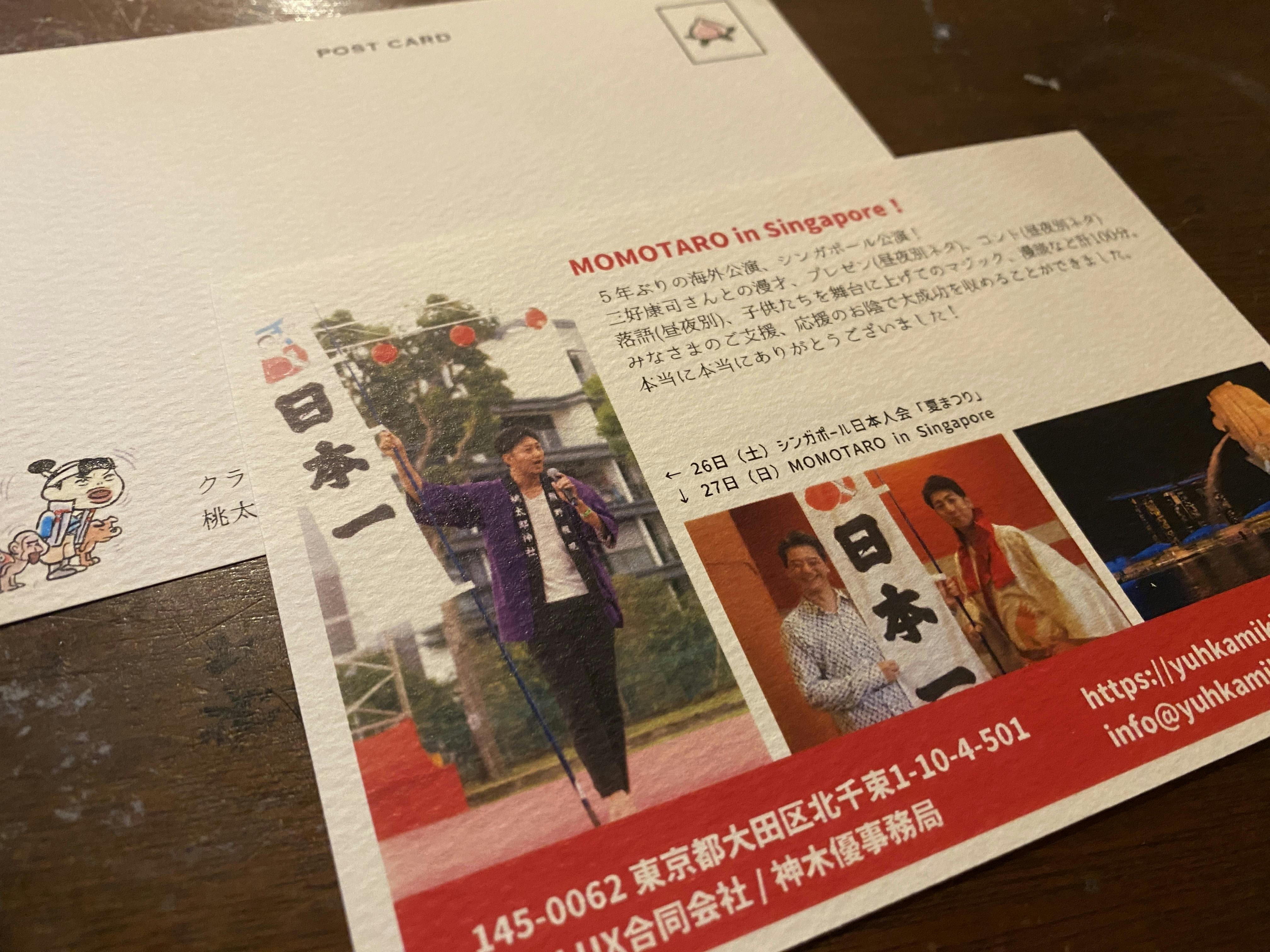 2023/09/07 01:07帰国してから早くも1週間。9月8日に「桃太郎芸術祭2023」がありますので、その準備にも追われておりますが、ハガキのお礼状をすべて書き終えました!明日に発送いたします!なのですが、同時にTシャツの製作に入りました。ここでイラストも見せちゃいます!!イラストレーターのもりいくすおさんに描いていただいた、描き下ろしの作品!!こちら!!マーライオンから、桃太郎一行がデデーーーーン!!Tシャツを含むコースの皆様へは、お礼状含めもうしばらくお待ちください!!猛烈に製作中です。神木が刷ってます。休憩しては刷ってます。たまに失敗します。寝巻きが増えます。というわけで、諸々今しばらくお待ちください!!本当にありがとうございました!! もっと見る