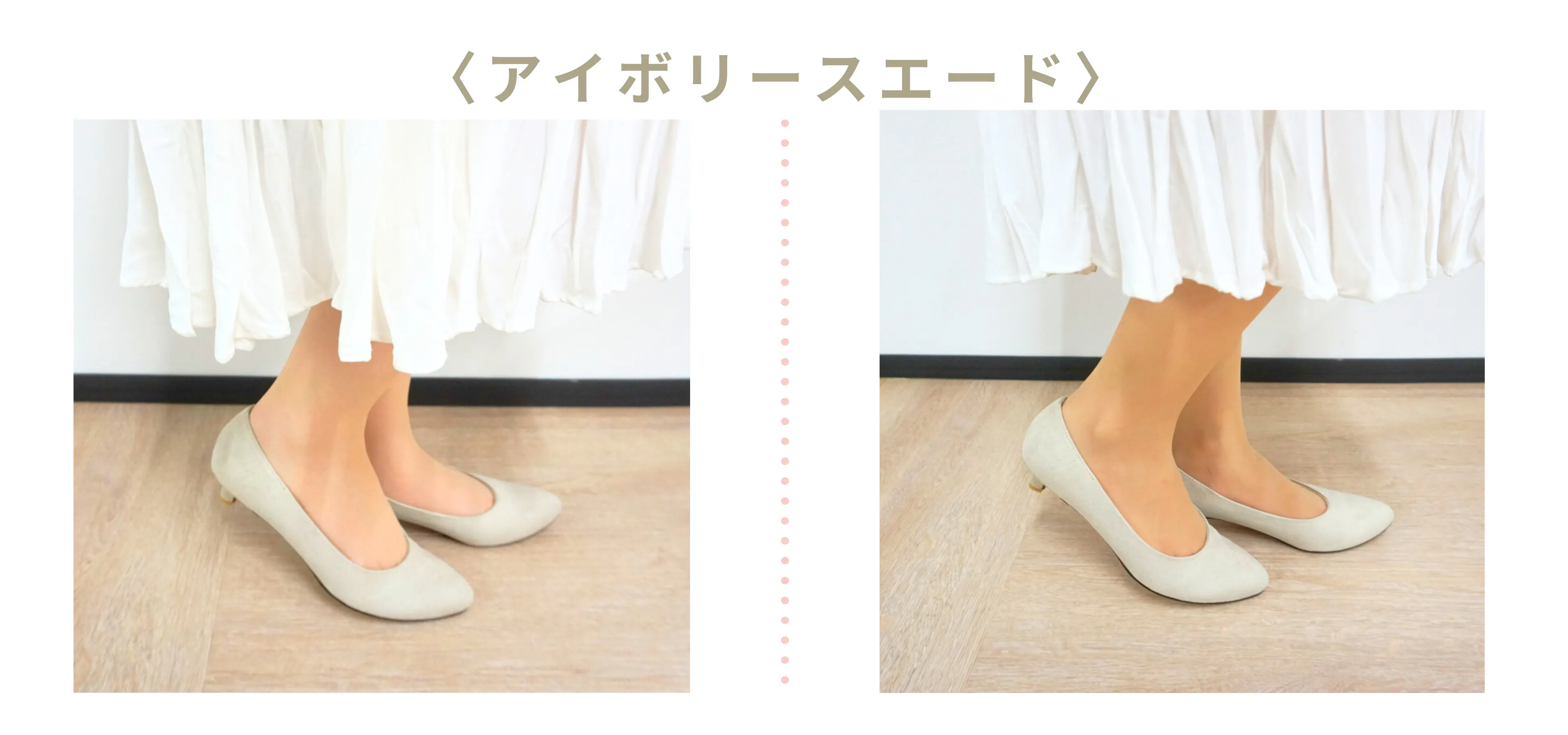足元にどのように馴染むのか、実際にパーソナルカラーの”イエローベースさん”と”ブルーベースさん”のスタッフで履き比べてみました。