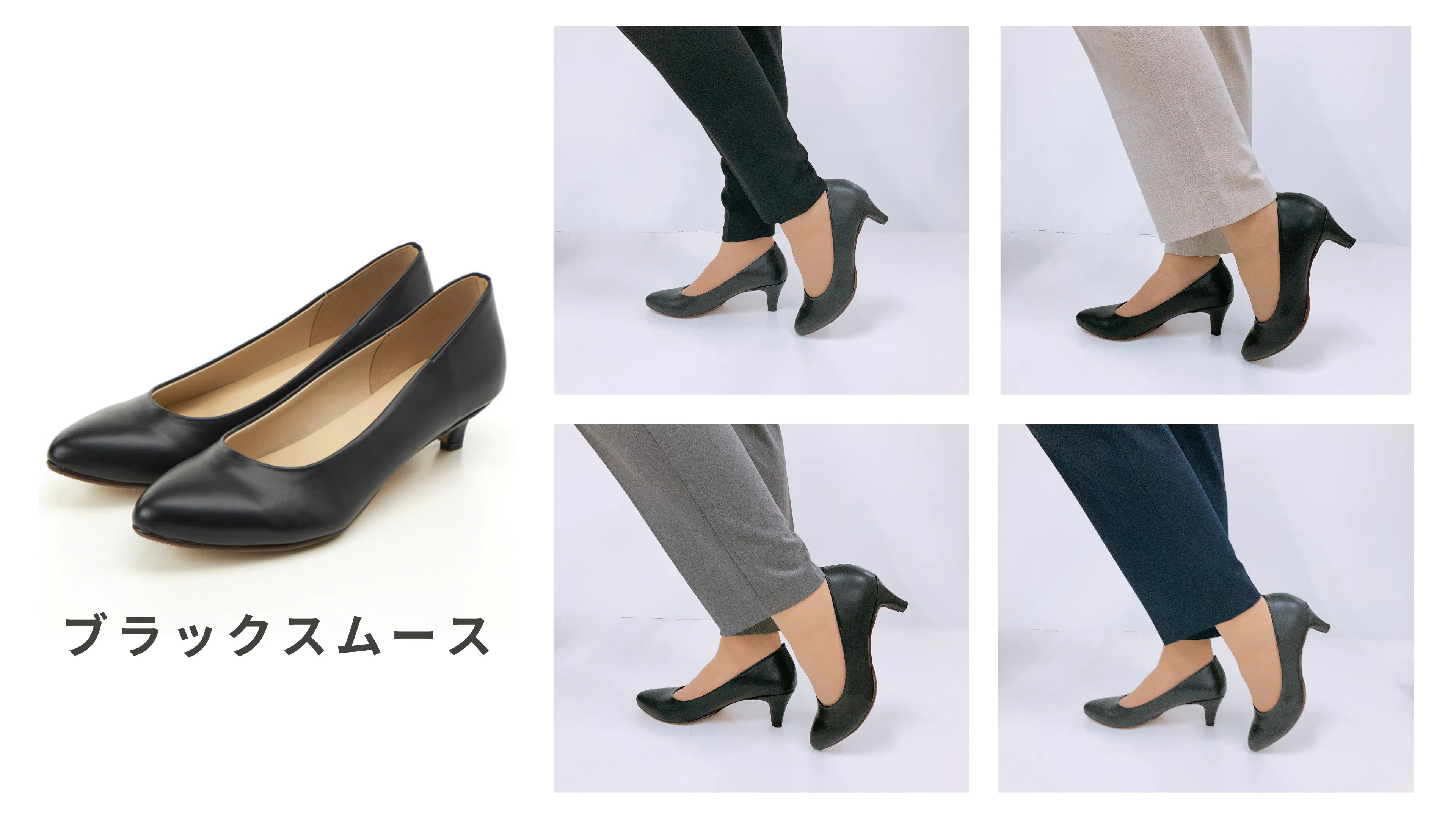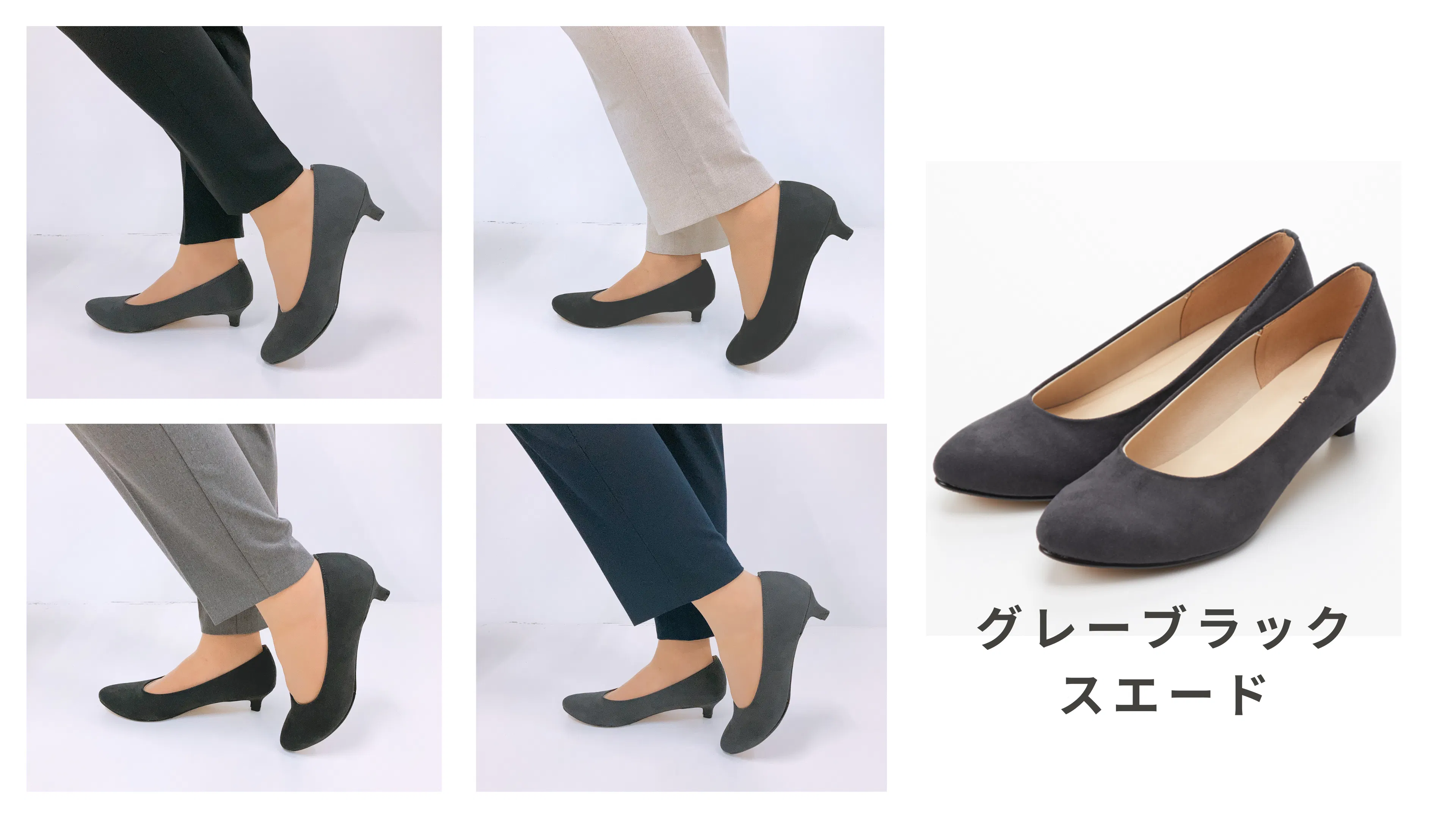 そこで、黒・グレー・ネイビー・ベージュのパンツにそれぞれの定番カラーのパンプスを合わせて履き比べてみましたので、参考にしてみてください。