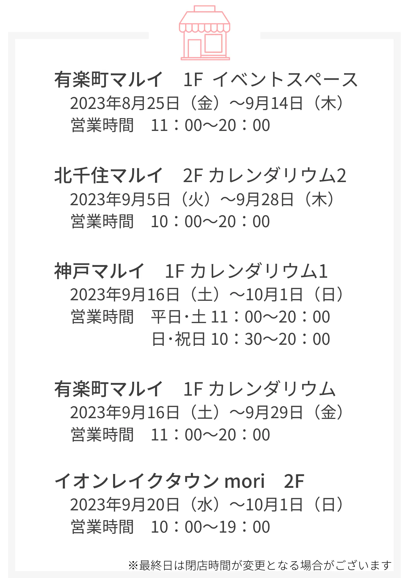 ※新型コロナウイルス感染症の予防・拡散防止のため、ご入店時のアルコール消毒や、混雑時の入店制限へのご協力をお願いいたします。