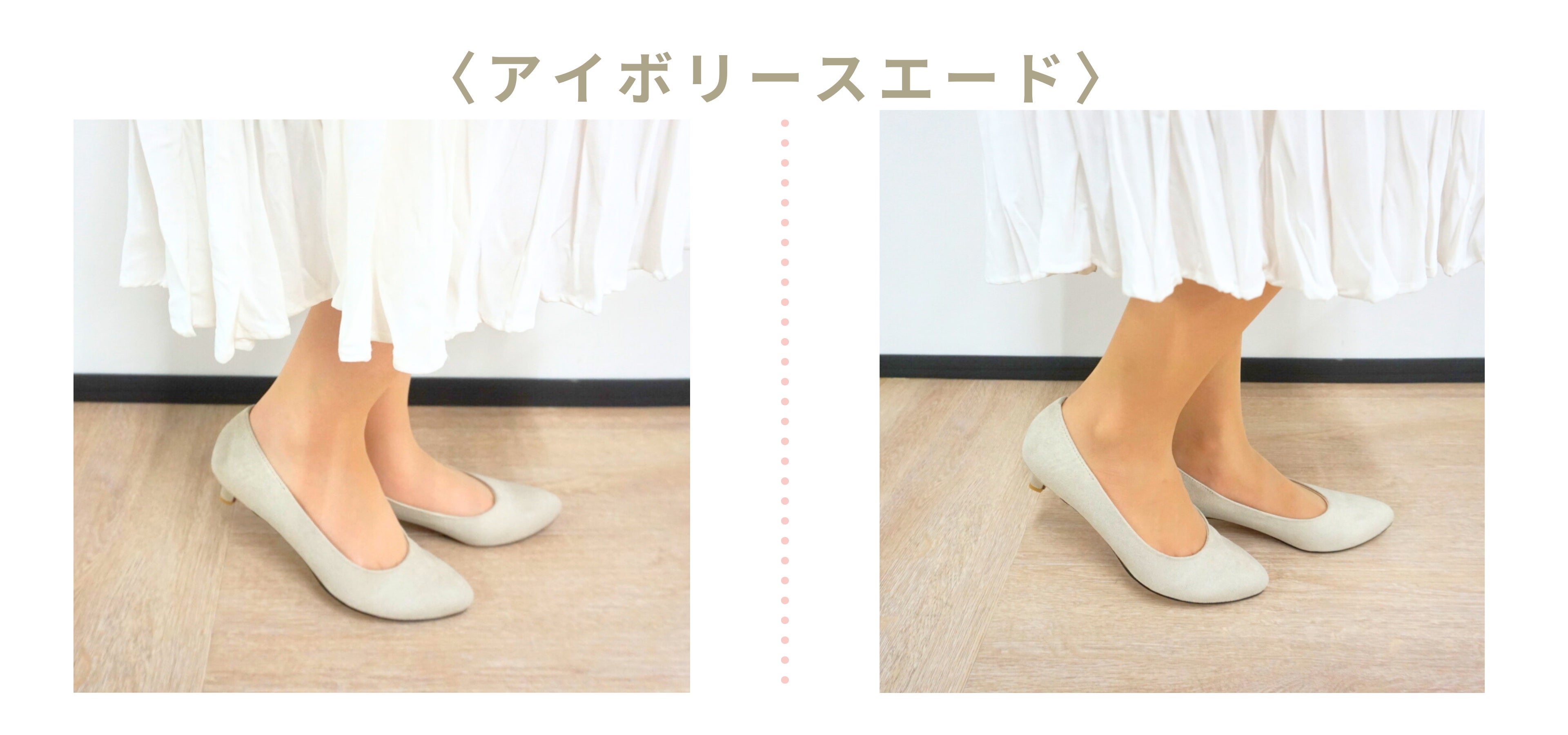 足元にどのように馴染むのか、実際にパーソナルカラーの”イエローベースさん”と”ブルーベースさん”のスタッフで履き比べてみました。