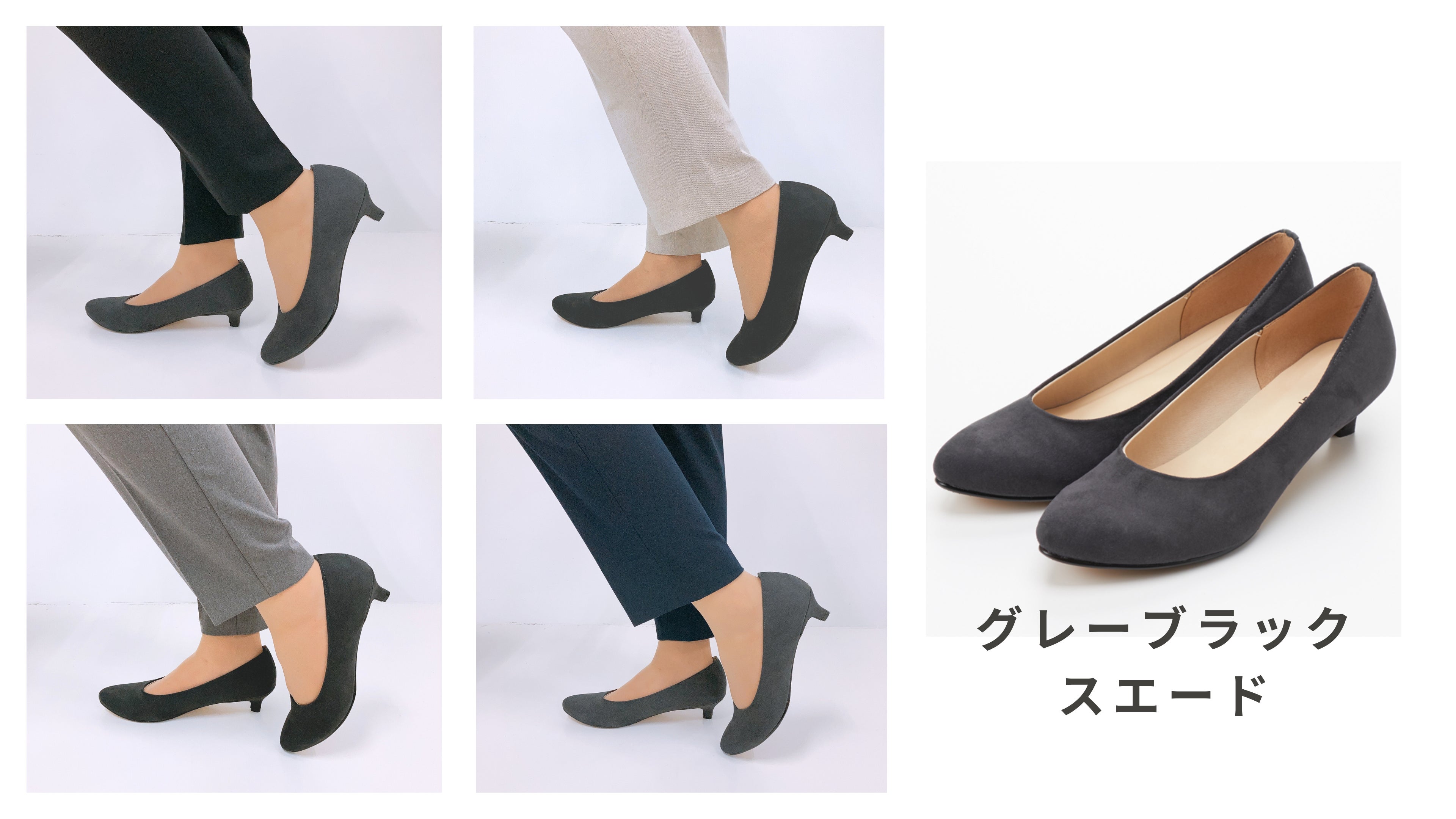 そこで、黒・グレー・ネイビー・ベージュのパンツにそれぞれの定番カラーのパンプスを合わせて履き比べてみましたので、参考にしてみてください。