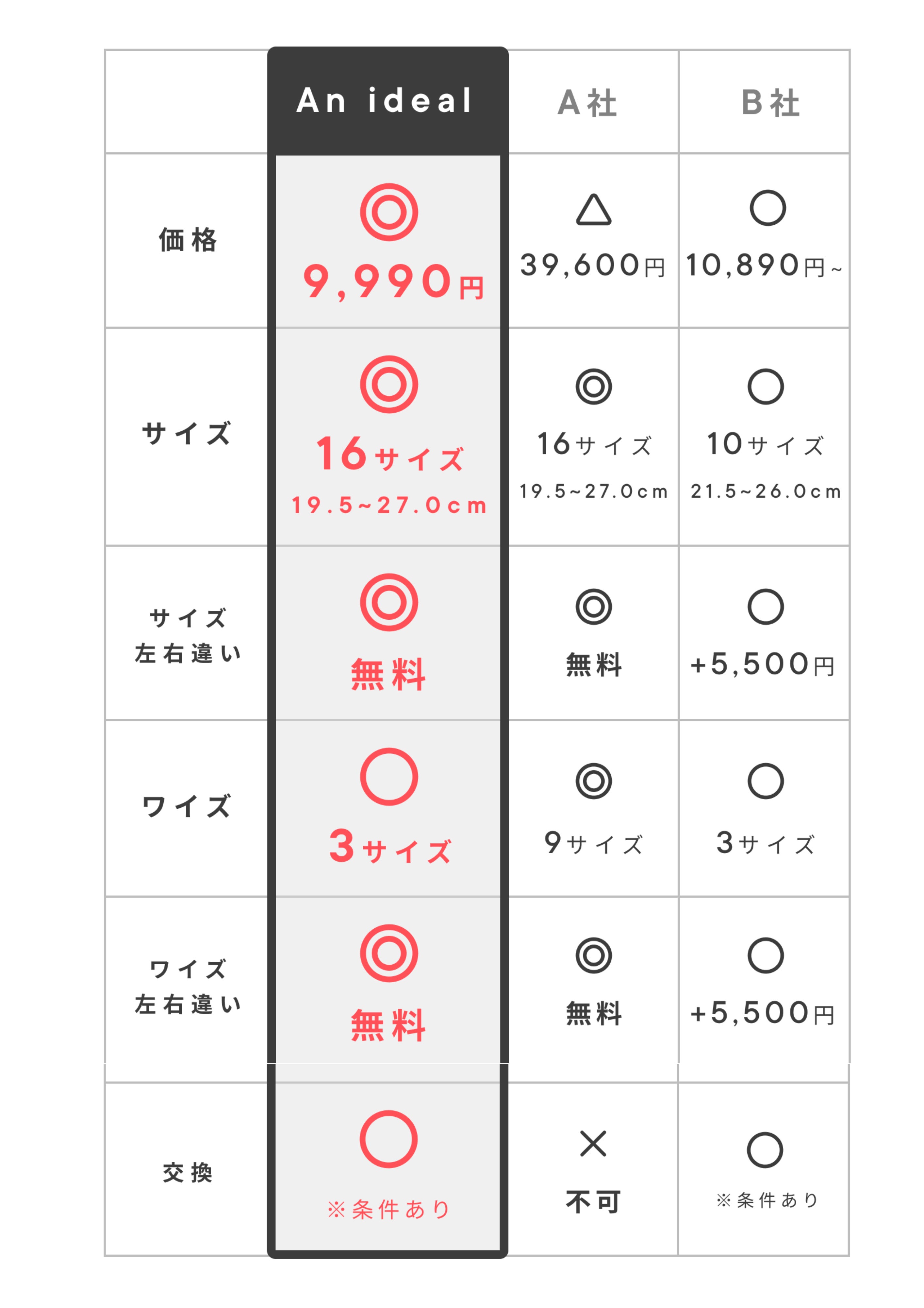 ※左右サイズ違いをご希望の方は、左右サイズ違い用のリターンをお選びください。