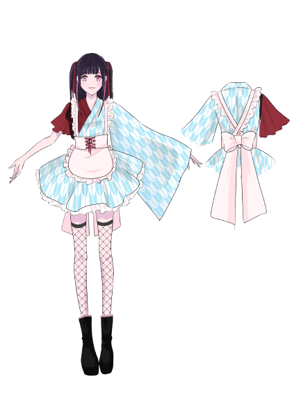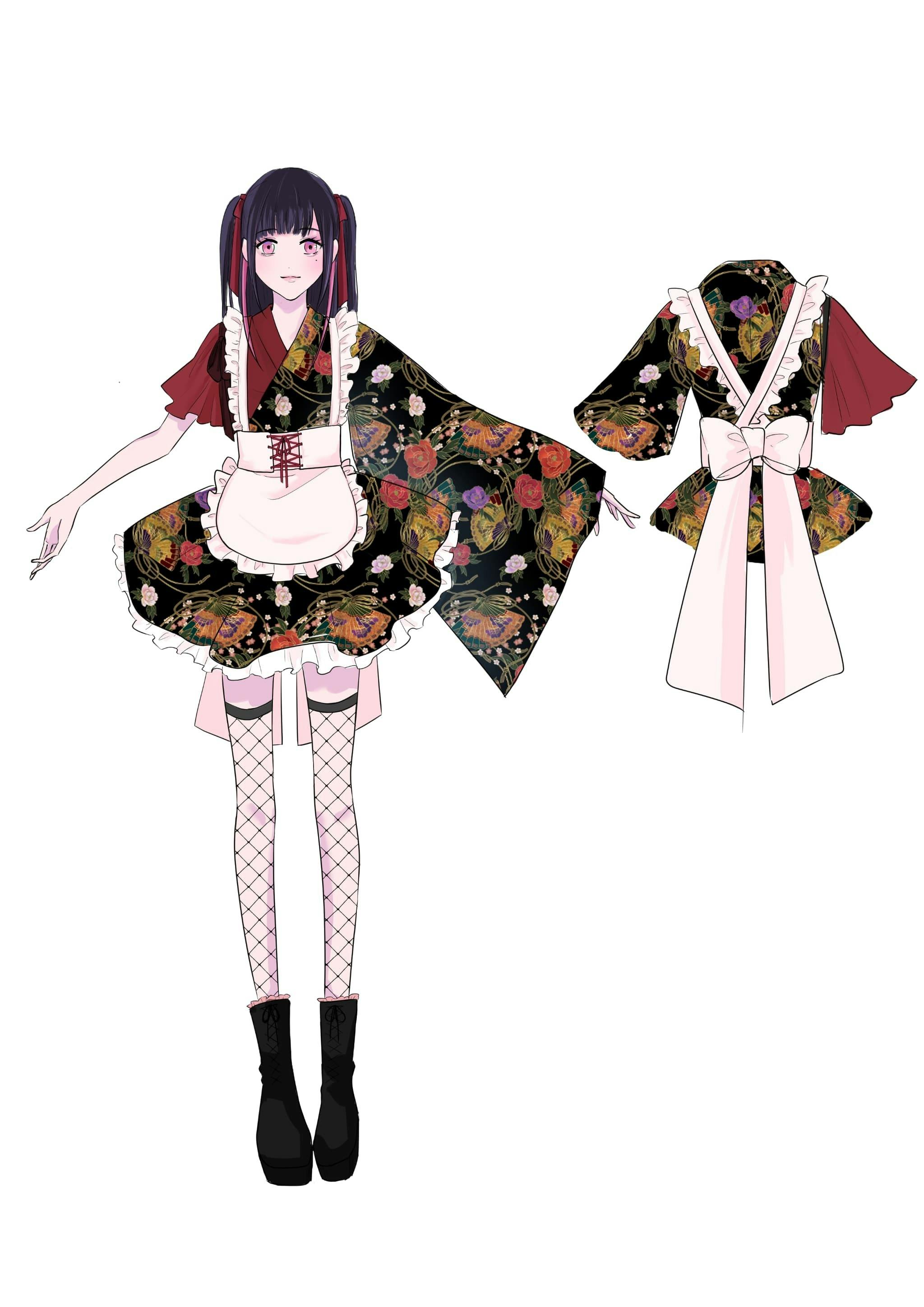 今回当店の付喪神たちが、同じデザインの装いで結託し、世界に誇れる日本の文化を発信していくために、こちらの当店オリジナルの和メイド服を制作したいと考えております。