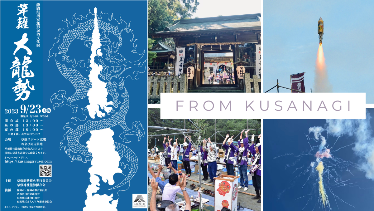 そして何よりも見逃せないのが、毎年9月に開催される「草薙大龍勢」です。これは地域の人々が一丸となって行う手作りの打ち上げ花火で、まさに一年を通じてのハイライトです。特に今年は草薙神社の創建1900年を祝い、地域が一体となった大きな祭典が予定されています。