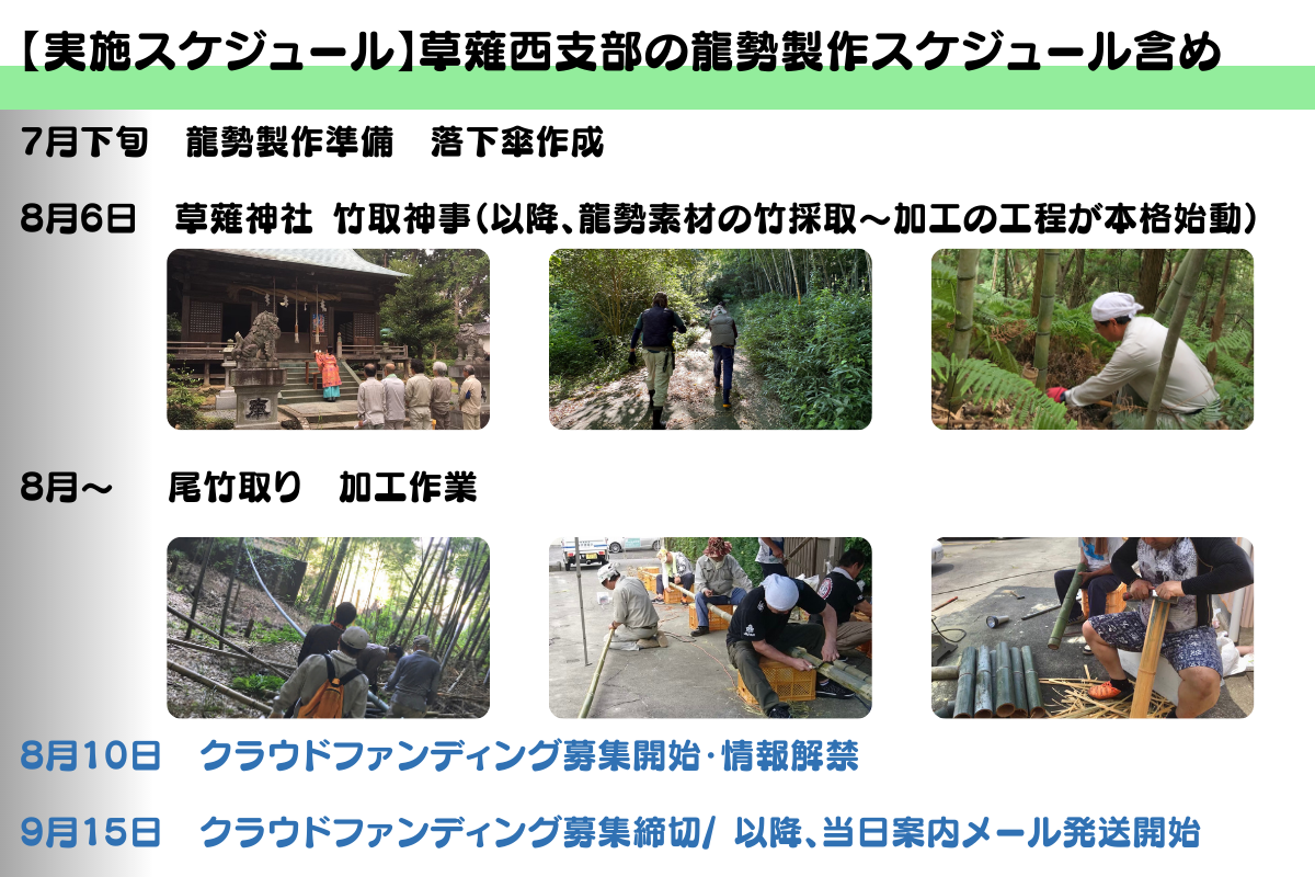 どうぞ、草薙大龍勢に対する私たちの情熱を感じていただけたら幸いです。皆さまの温かいご支援が、草薙のお祭りをより輝かせ、未来へと続く素晴らしい伝統を育む力となります。
