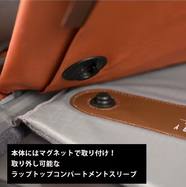 その他:マグネット式バックル、シームテーピング付き100DHDナイロン素材、防水性あり