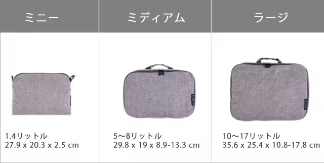 3サイズ展開で容量に合わせて使い分け可能です。