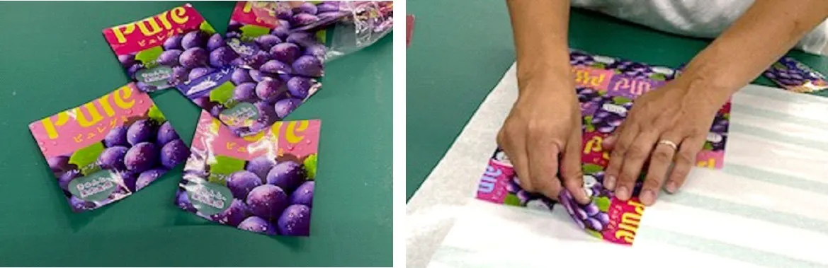最近では、飴やグミを召し上がるだけでなく、パッケージのデザインをきっかけにご購入いただくことや、飴やグミを利用したアレンジレシピ等、様々な楽しみ方を目にするようになりました。そこで目を付けたのが、パッケージ包材を活用した雑貨作りです。