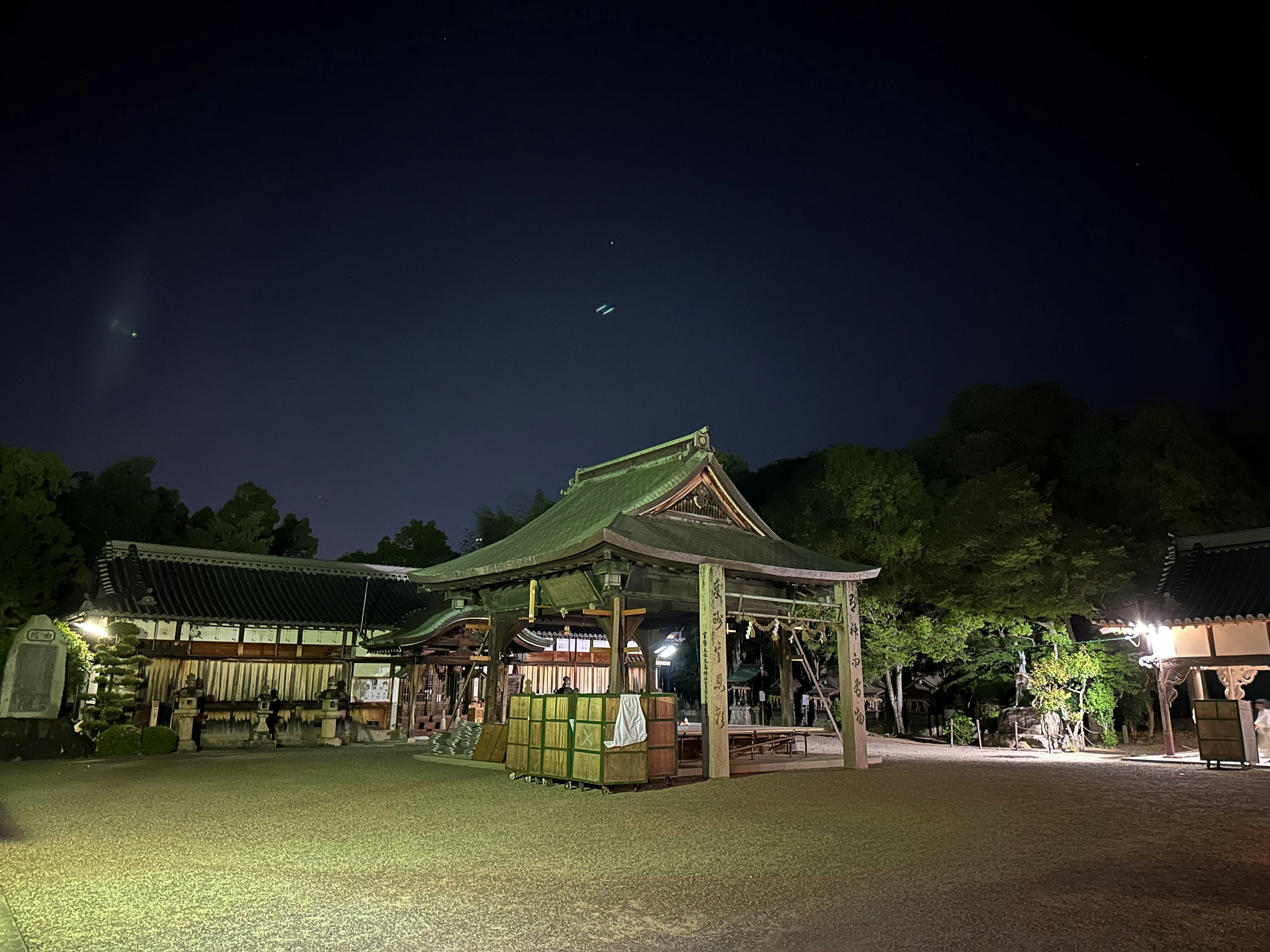 2024/05/09 23:19みなさまこんばんは!本日は(初めて)お天気に悩まされることなく無事に神社にてありとほし薪能を開催することができました!皆様より温かいご支援をいただいたからこそ、今回の遷座80年記念講演を迎えることができたと思っております。17:30〜20:50と途中休憩を挟みましたが大変長い公演となりました。終了後まだ2時間ほどしか経っておりませんが、本当に夢のような時間であったなと感じております。神事として位置付けられる「翁」を自分だけでなく、多くの方々に見ていただけたことが幸せでした。著作権の関係もあり、可能であれば今後こちらで報告させていただきたいと思います。今後は皆様に安心して過ごしていただけるよう、ブルーシートをとっております。舞殿に上がっていただく際には、お履き物を脱いで過ごしていただくようにお願いいたします。檜の香りに包まれた空間で一息ついていただける様子がたくさん見られるといいなぁと思います。最後になりましたが、改めて厚く御礼申し上げます。蟻通神社権禰宜 木戸睦晃 もっと見る