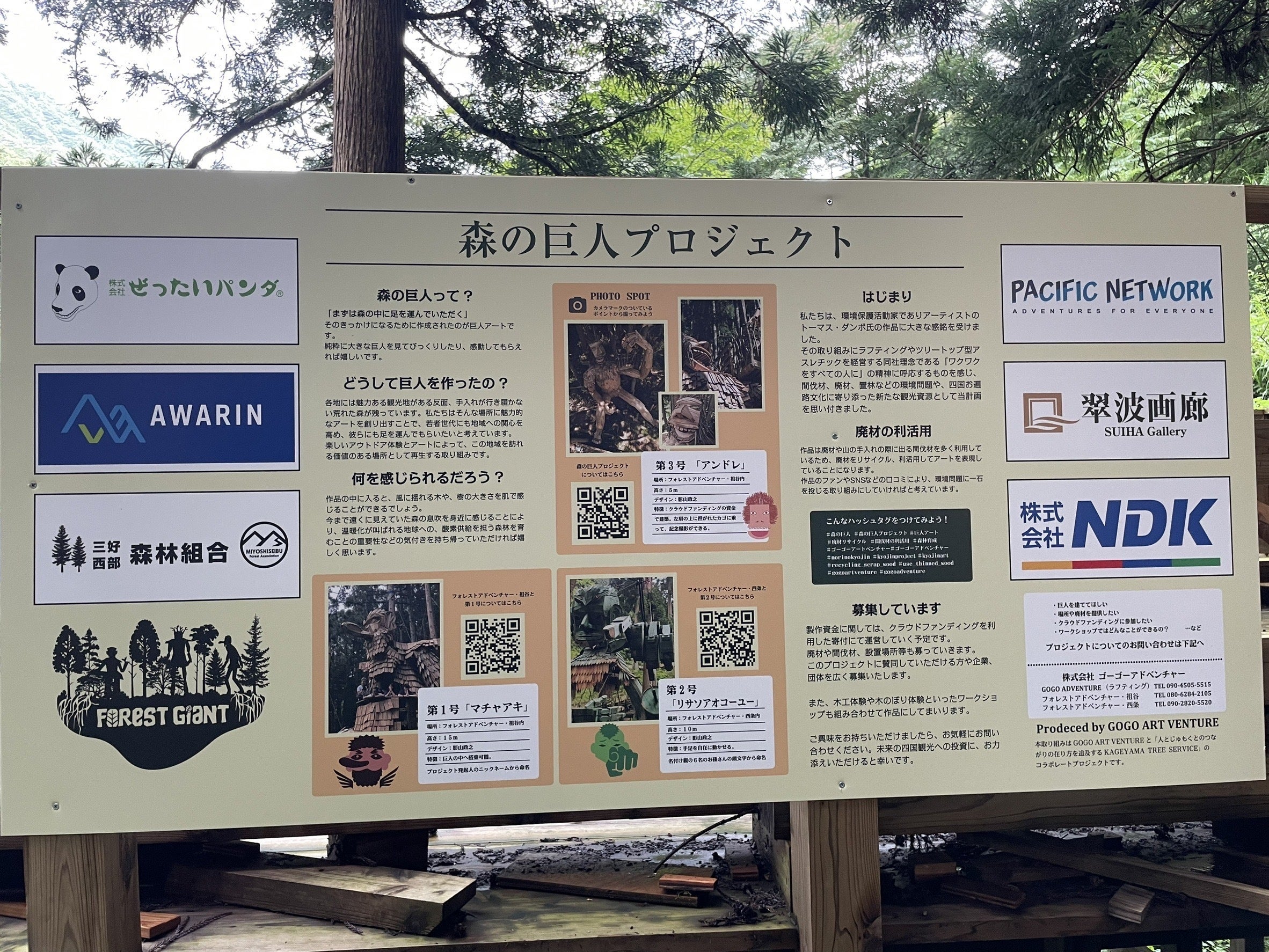 2024/07/13 10:07大変お待たせしました。プロジェクトを支援いただきました企業様、個人様のスポンサー看板の設置が完了いたしました。たくさんの方にご支援いただき世界に類のない唯一無二の森の巨人を作ることができました。すでに巨人を観た方からは、驚きと「感動した」との声をいただいており、新しい観光コンテンツの創造に貢献できる取り組みになると感じています。また巨人アートの活動を通じて地域資源の循環という観点からSDGsに関連した体験学習コンテンツとも親和性があります。これにより、地域の子どもたちや観光客は持続可能な開発目標を学びながら楽しむ機会を得られます。観光だけではなく、環境教育コンテンツとしても地域の魅力と価値を一層高めることが可能であり、地域にお住まいの方やや観光客双方にとって有益な取り組みとなるようにしていきたいと思います。ご支援いただきまして、誠にありがとうございました! もっと見る