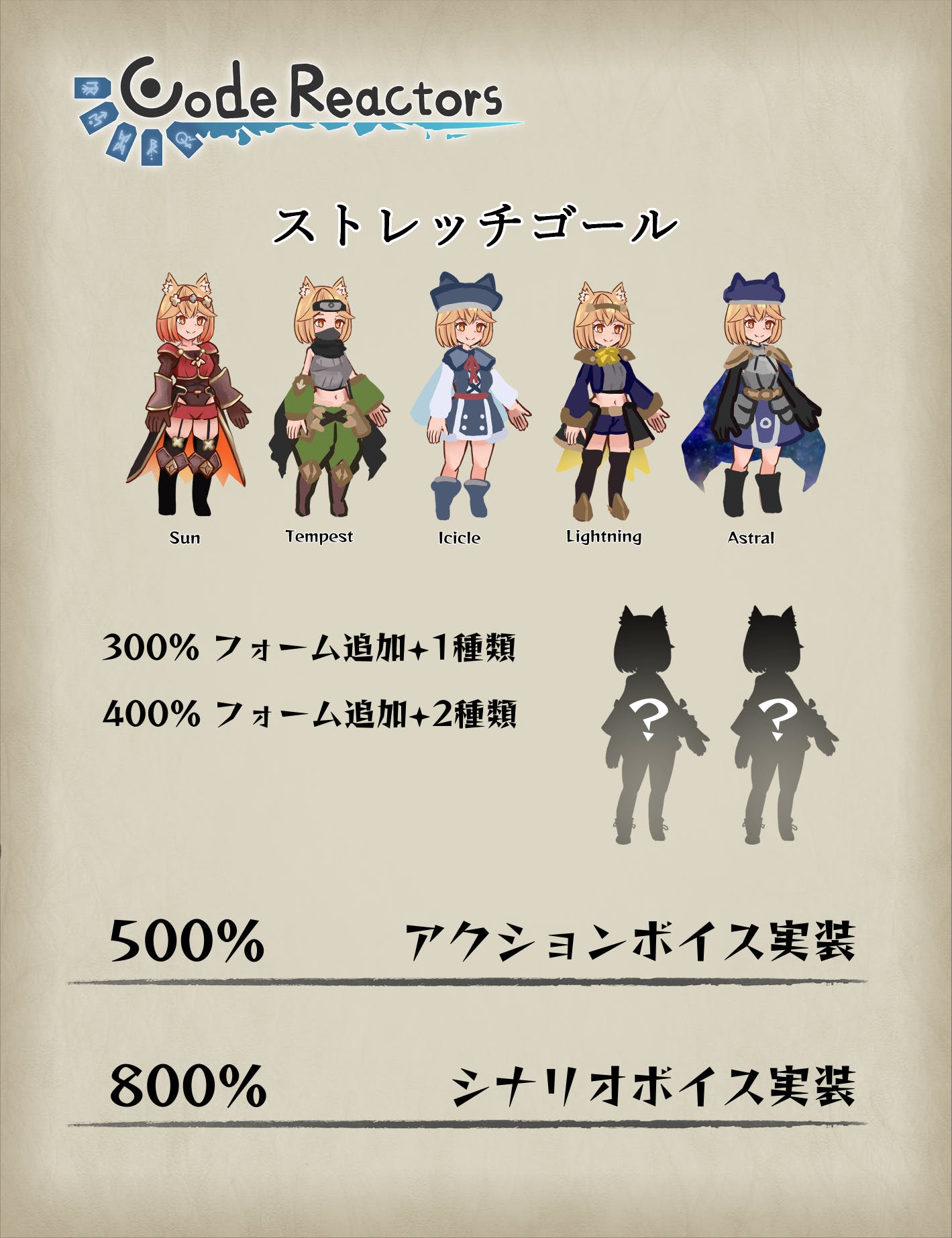 さらにストレッチゴール800%達成したあかつきには、 シナリオイベントのセリフにボイスをつけます!アクションだけでなく世界観やシナリオにもより深みを持たせたいですね!