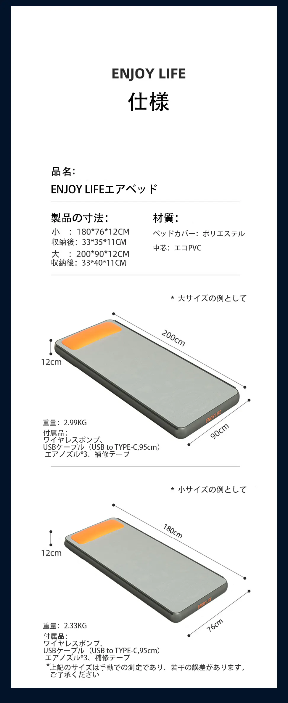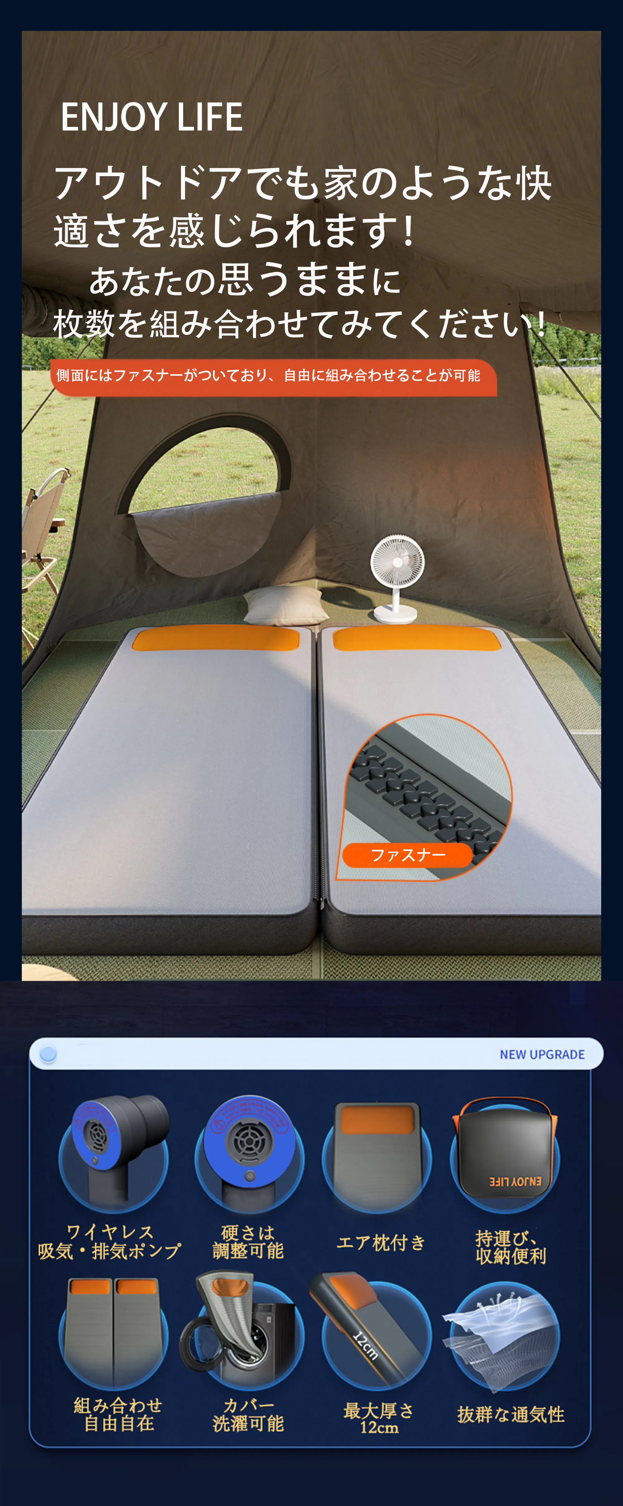 「ENJOY LIFEエアベッド」×1 ワイヤレス空気入れ・抜き両用ポンプ×1