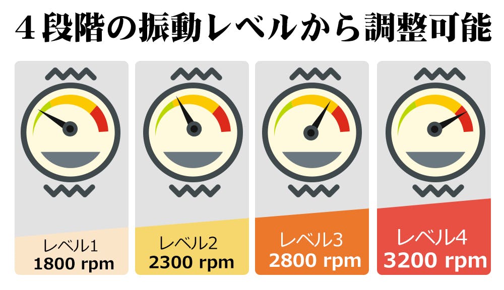 レベル毎の異なる振動で筋肉を効果的に刺激します。
