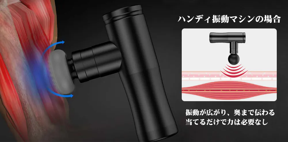 ハイパワーモーターを使用し十分な振動を筋肉に与えます。