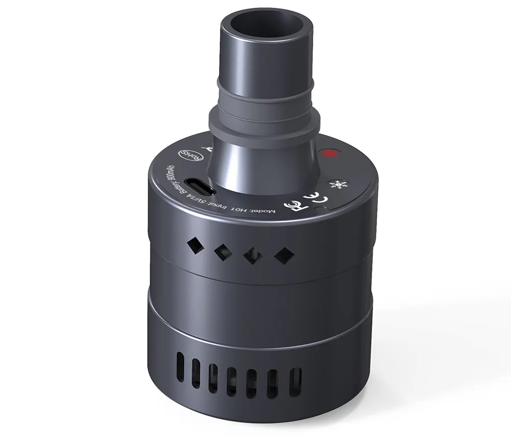 今回の温冷ヘッド付きボディガンは、従来のボディガンに比べて、温冷ヘッドが単独でご利用いただける点にあります。これ一つで通常の筋肉刺激に加えて、温熱・冷却のみでも使用可能になりました。小さくカバンに入れて仕事の休憩中、トレーニングの後にもご利用いただけます。温冷ヘッドは単品購入も可能、一般的な内径19mmの仕様なので、他のボディガンにつけて使用いただくこともできます。