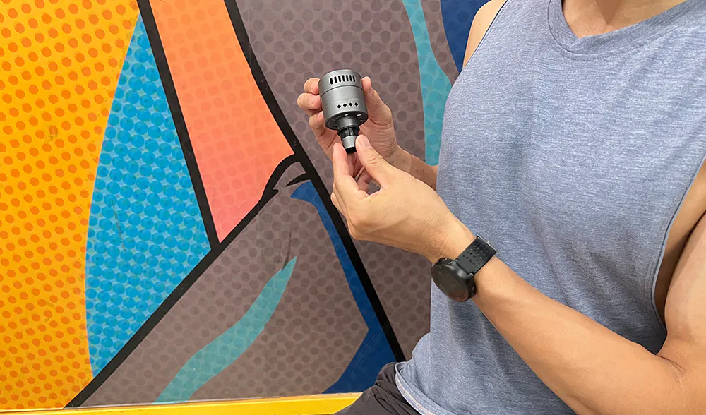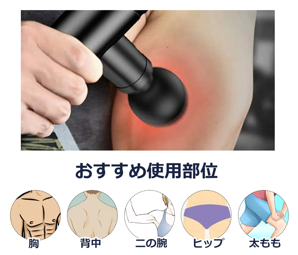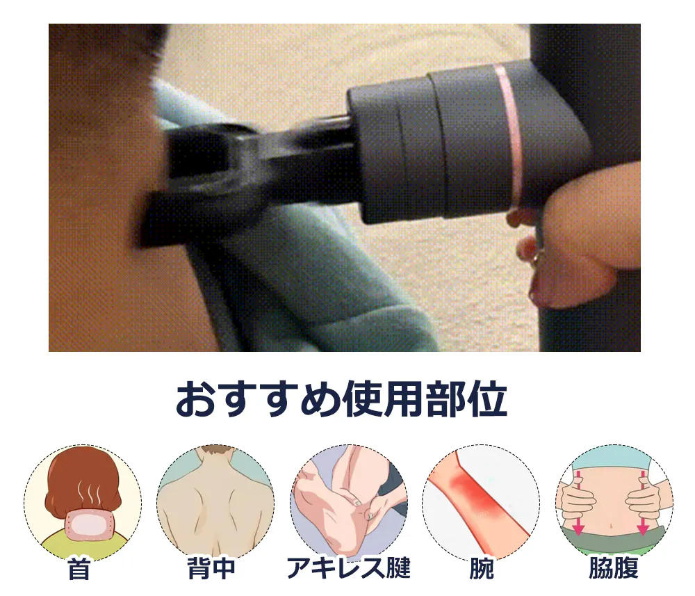 持ち運びに負担がかからないのは当然ながら、しっかり筋肉の深部まで伝わる強度、振動数、振動数があるか。アタッチメントを変えて部位ごとに変化可能かどうか?が大切です。