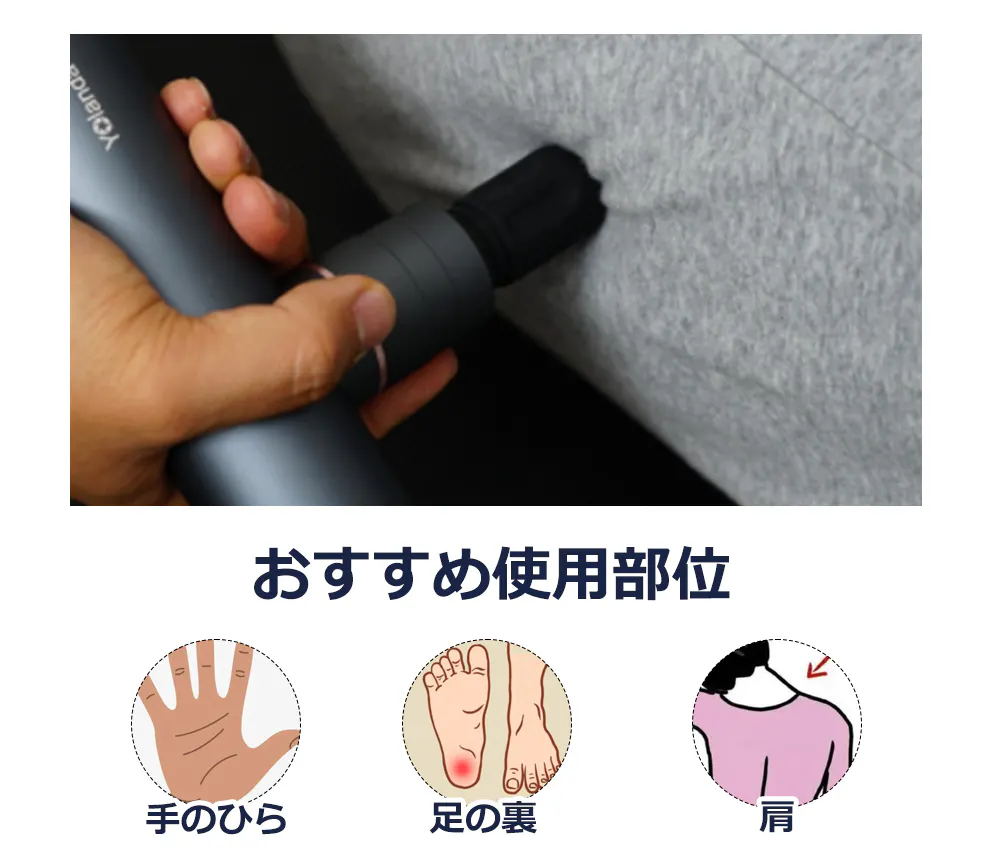指先のようなピンポイントの筋肉刺激が可能で、刺激の感じに応じて最適な刺激モードを探して使用してください。 手のひら、足の裏、肩などの深部組織への使用に適しています。