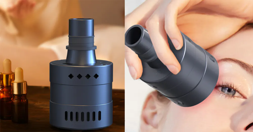 瞬時に冷却・温熱ができ、もちろんボディガンのアタッチメントヘッドとしても利用可能。単独でも使用可能なので、外出先で温冷モードを使用して顔や体をケアしたり、アロマオイルを付けてお好きな香りの空間を楽しむこともできます。