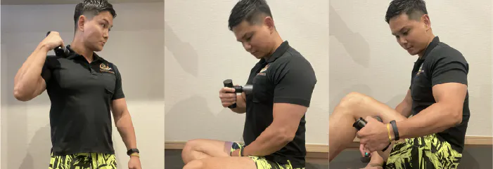 トレーニングで疲れた体の奥の筋肉をしっかり刺激できるので、筋肉がほぐれ血行が促進されてリカバリーされやすくなると感じます。またトレーニング後は筋肉が固まりやすく、そのまま放置すると回復が遅れたり怪我のリスクが増えてしまう為、トレーニング後にリカバリーを意図して軽い振動で使用することをおすすめします。