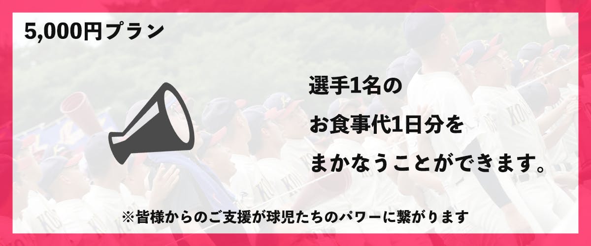 ※こちらのご支援で、選手1名のお食事代1日分をまかなうことが出来ます。