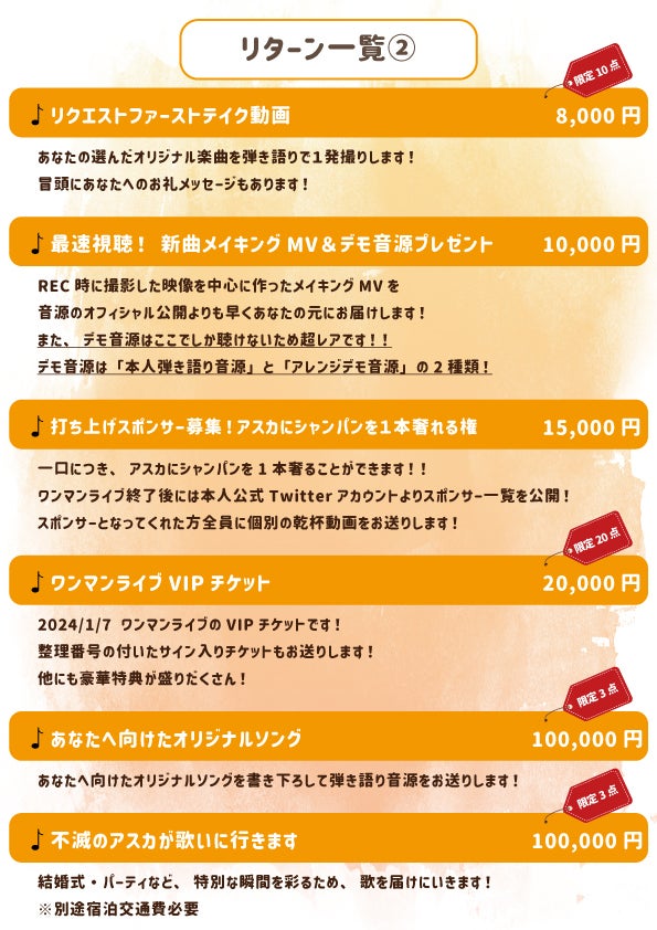 今回のリターンは皆さまに楽しんで頂けるよう精一杯考えましたので、