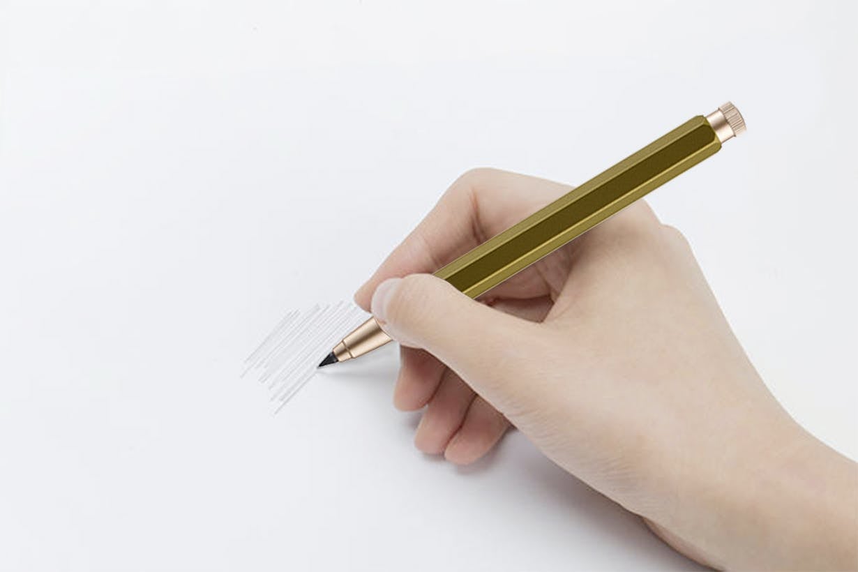 今までにも金属でできた芯を使用した筆記具は存在しましたが、ペン先に合金チップを利用したものが大半でした。“無限”に書ける鉛筆は、芯先には金属製のチップではなく本物の黒鉛芯の使用にこだわった鉛筆です。失くさない限り長く使い続けることができ、しかも削る必要がないのに鉛筆のような書き心地を実現、文字を書くにも、絵を描くにもスムーズにご使用いただけます。
