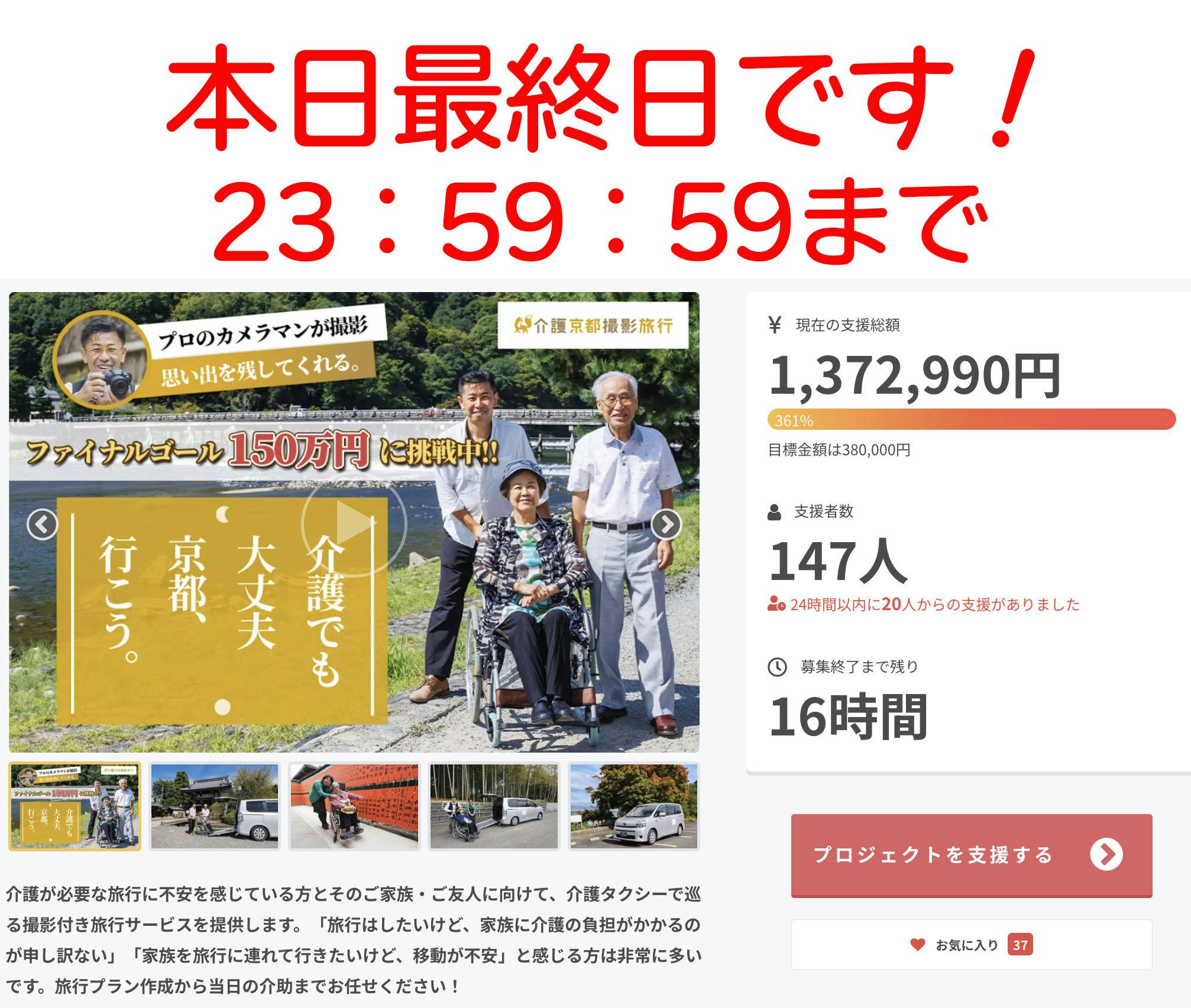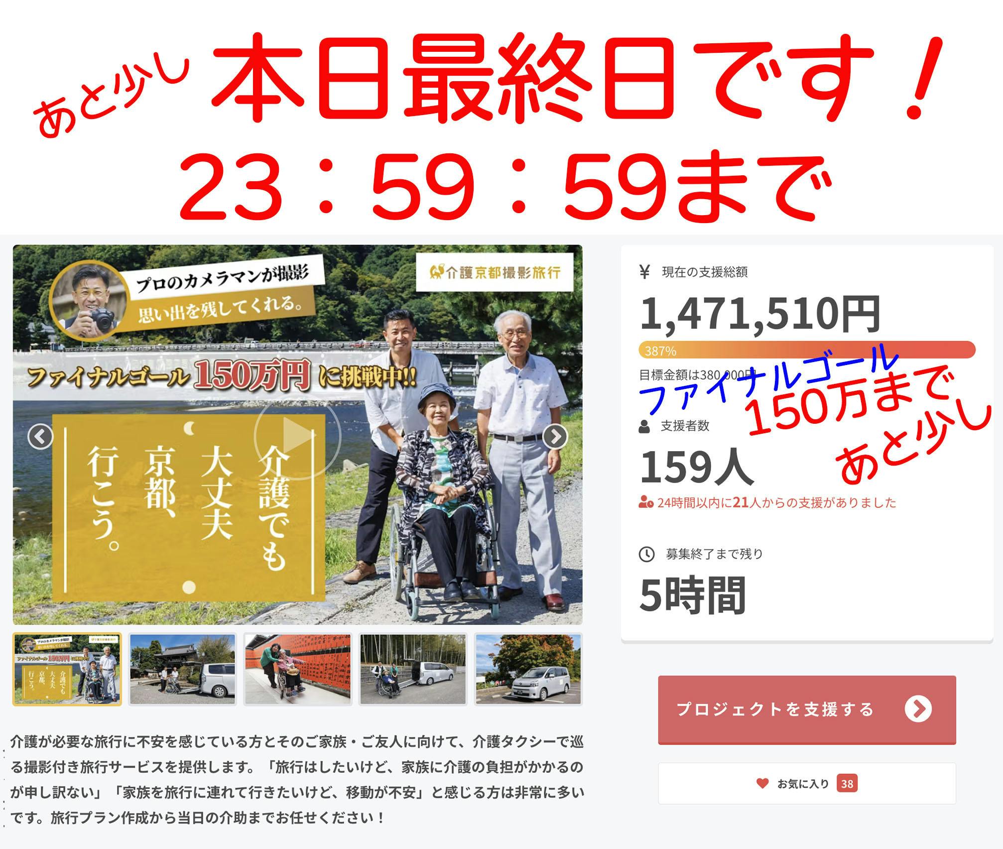 本日最終日 23:59:59まで! ファイナルゴール150万円まであと少し!