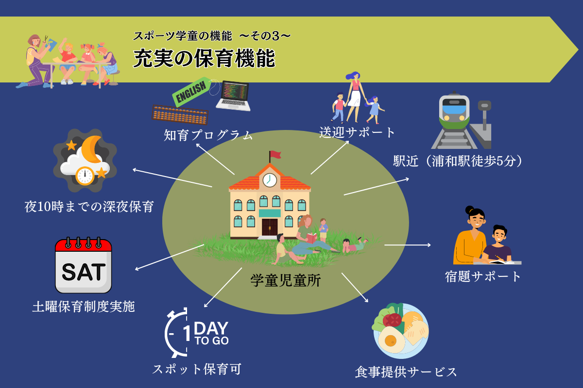 特に市内でも高い人口数を誇る浦和・大宮のような都市部のエリアでは、圧倒的に運動施設環境が少なく、一日の学童保育中全く運動時間を取れない施設が多いです。