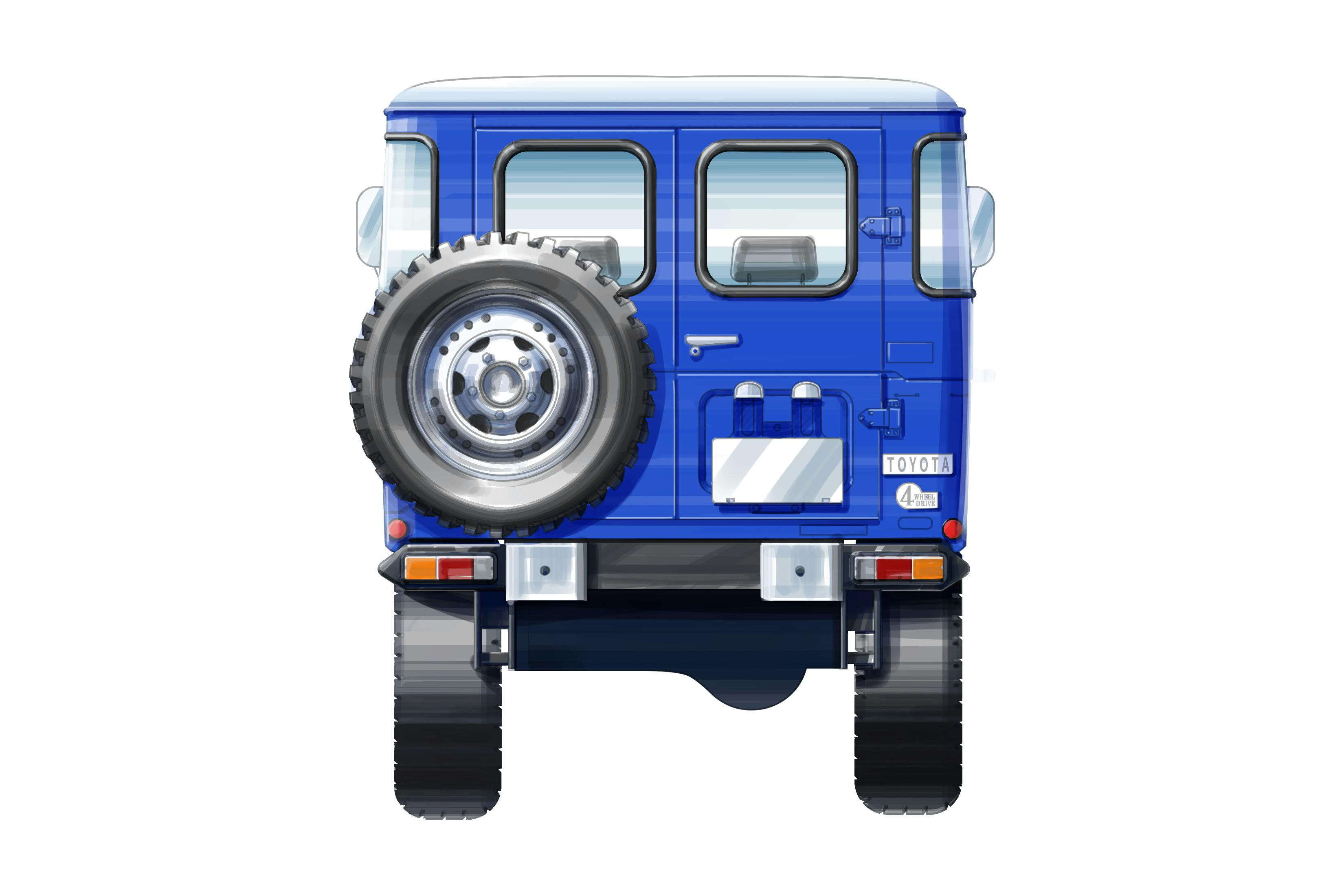 ↑ボディは本プロジェクト限定のブルー。実際の販売カラーのひとつでありながら、ミニカーとしては存在しなかったカラーリングです。今回、ホビーメーカー京商様とのコラボによって【BJ42V】が限定復活、CAMPFIREだけで手に入る一台となります。※イラストはイメージ ※製作するミニカーは、BJ42Vになります