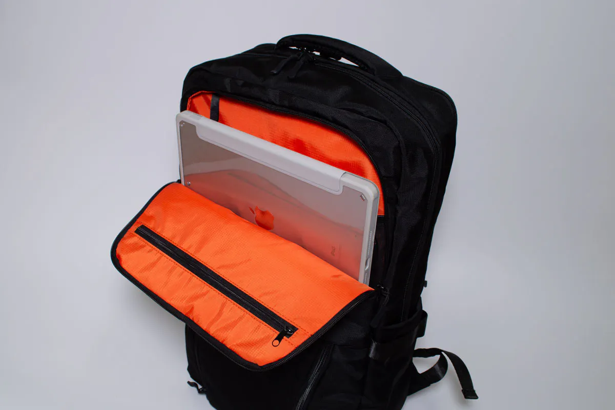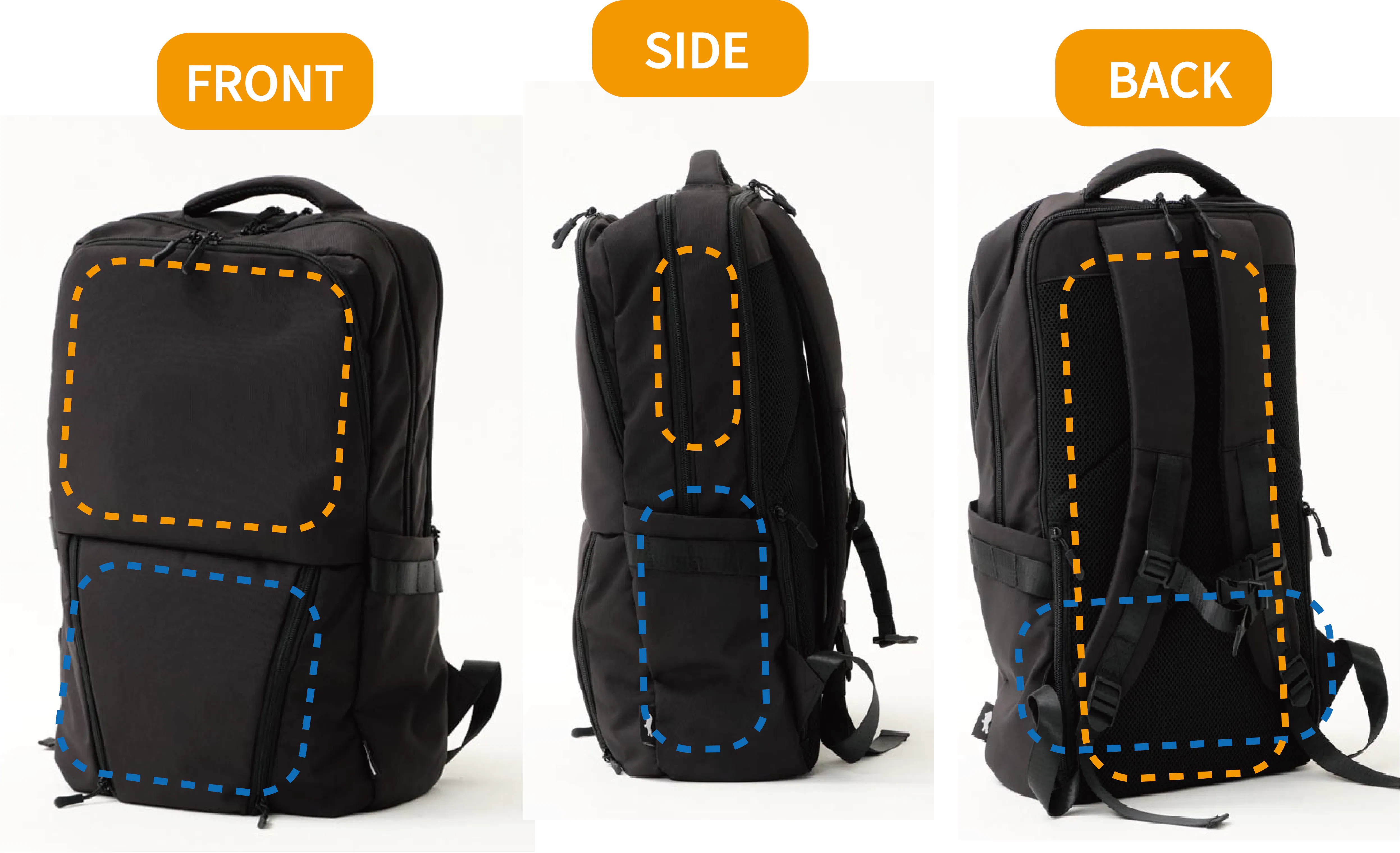 背中には、ノートパソコンやタブレットを安全に守ってくれるポケットをつけました。