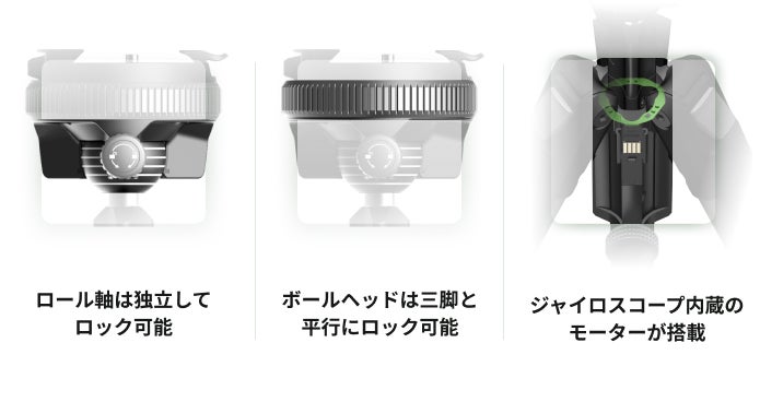 ロックされると、ロール軸が固定され、三脚と水平になります。