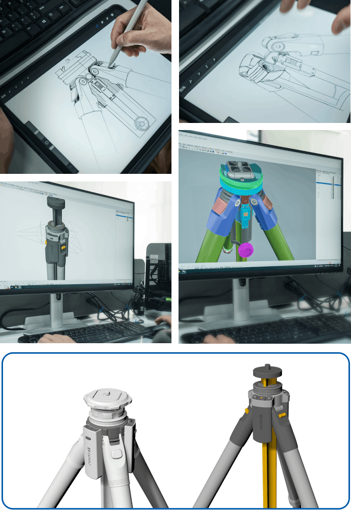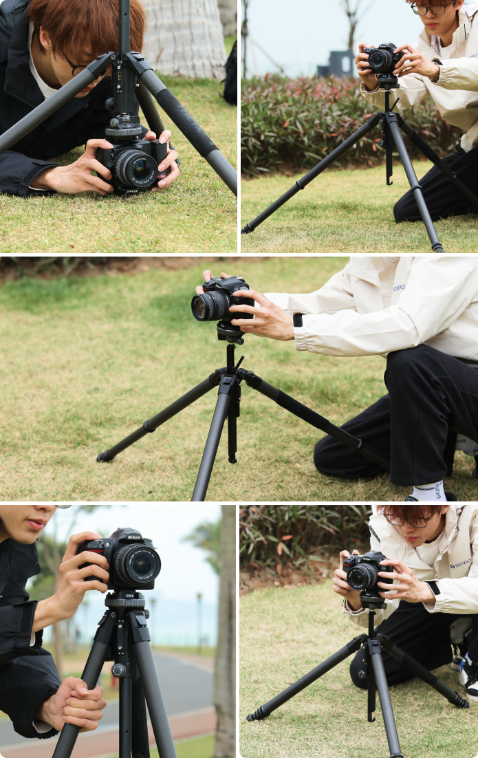 実際、当初は旅行に適した電動三脚ヘッドを内蔵した製品を設計したいと考えていました。しかし、電動三脚ヘッドのトルクは高く、小型化すると安定性が損なわれるという課題がありました。多くのテストの結果、Thetaの脚とボールヘッドを再設計し、携帯性と自動水平調整機能を兼ね備えた三脚を開発することに成功しました。もちろん、安定性と実用性も一切妥協していません。
