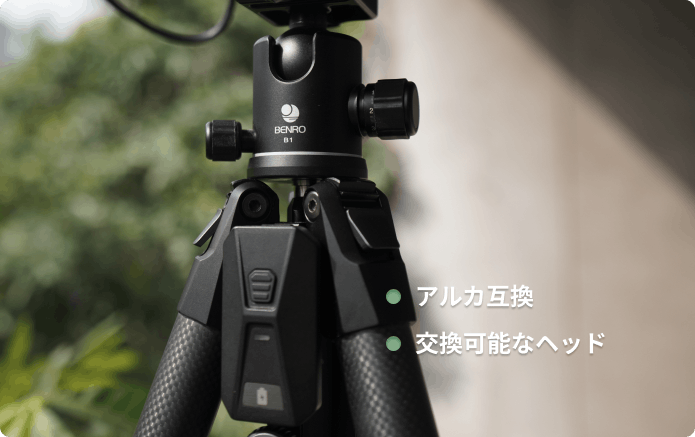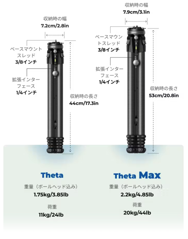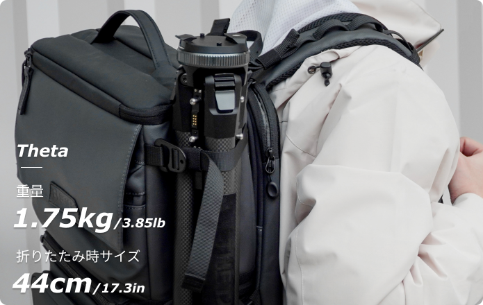 太く丸みを帯びた脚とプレミアムなカーボンファイバーにより、Thetaは開けた風の強い場所でもフルフレームのDSLRとレンズを簡単にサポートできます。