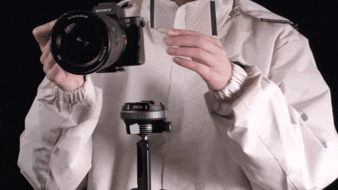 Thetaのボールヘッドには、カメラの取り付けをより迅速かつ安全にするための自動スナップロック機構が設計されています。クイックリリースプレートをカメラに取り付けたら、カメラをボールヘッドに押し付けるだけで、プレートが自動的にロックされます。これ以上の操作は必要ありません。カメラを取り外す際は、ロックリングを回してロックを解除し、簡単に取り外すことができます。