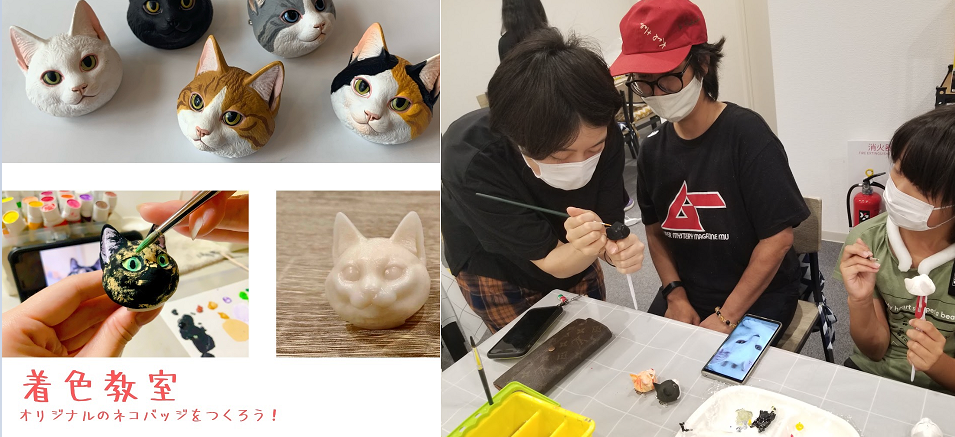 全国的にも珍しく8月上旬に行われる「高岡七夕祭り」の期間中には、富山大学芸術文化部の生徒たちが企画した海洋堂のフィギュアを用い独自の「猫バッジ」を家族の方々に製作してもらいました。