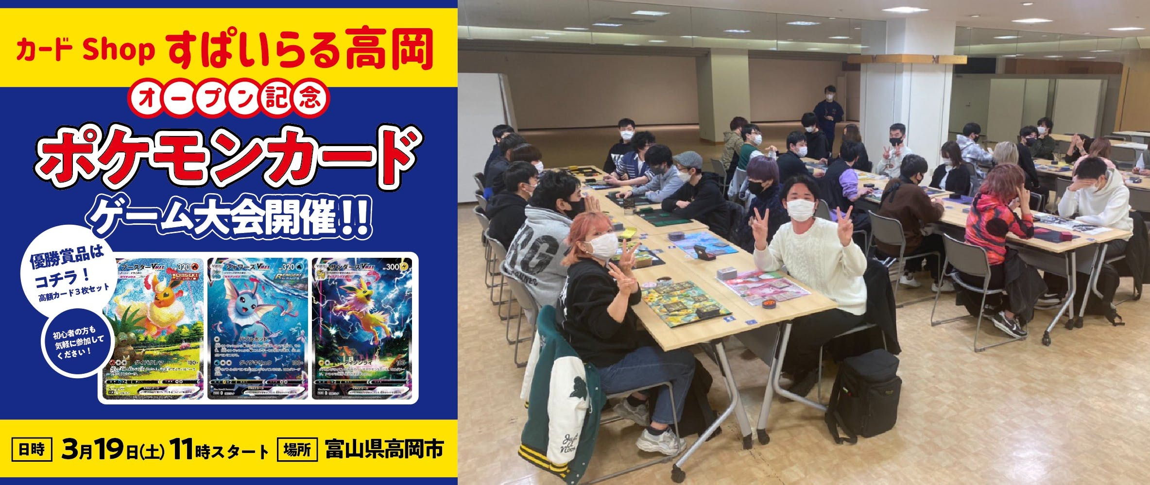 ショップオープン2日目、令和4年3月19日には豪華優勝賞品がかかった「ポケモンカード大会」を開催したところ、大会応募総数が400名以上になりました。