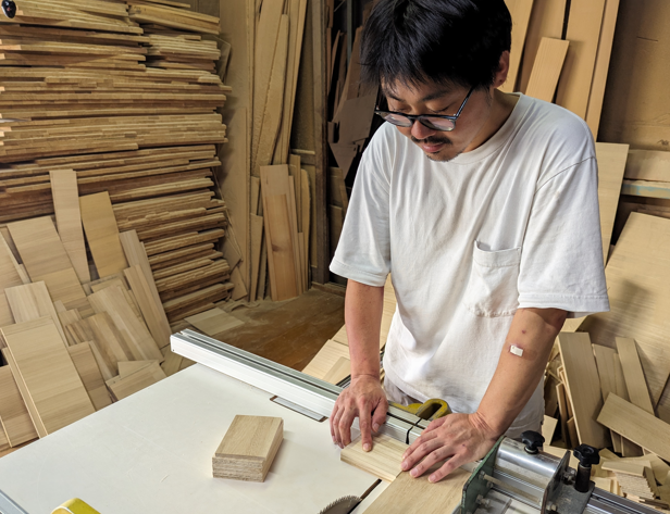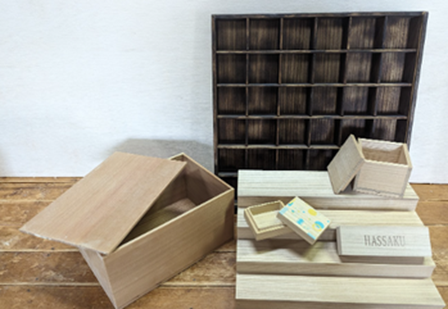主に桐を使った木工製品の製造を担っておられます。近年ではレーザー加工機やUVプリンターなどを用いたデザイン性あふれる製品づくりを手掛け、新しい分野への挑戦を行っておられます。