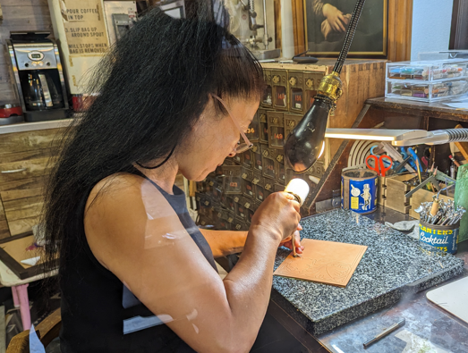 高岡の伝統産業である銅器製品や金属製品に塗装を施す技術をお持ちのクリエイターさんです。独自の塗装技術により、きらびやかな製品や深みのある製品に仕上げられ、金属製品に彩りを加えられておられます。