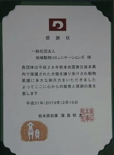 熊本県から感謝状も頂きました