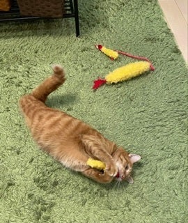 ⚫︎奇形の子猫として倉敷保健所に収容され、後ろ足が摩擦で腐りそうになり後ろ足2本切断手術を施しリハビリ後、里親募集したところチャー茶も里親宅で幸せに過ごせています